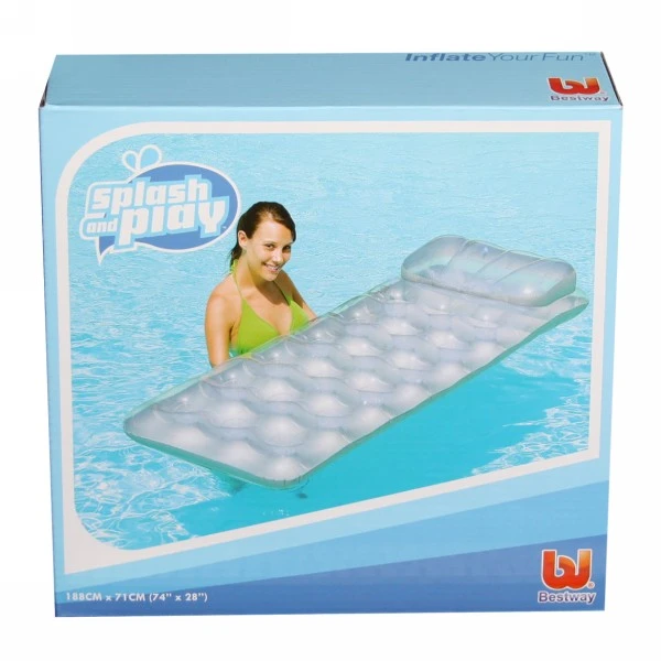 Почувствуйте себя на волнах с комфортом! Этот надувной пляжный матрас создан для тех, кто ценит расслабление и удобство во время плавания или отдыха у воды. Его прочная конструкция и удобная встроенная подушка превратят любой водоём в вашу личную зону релакса.