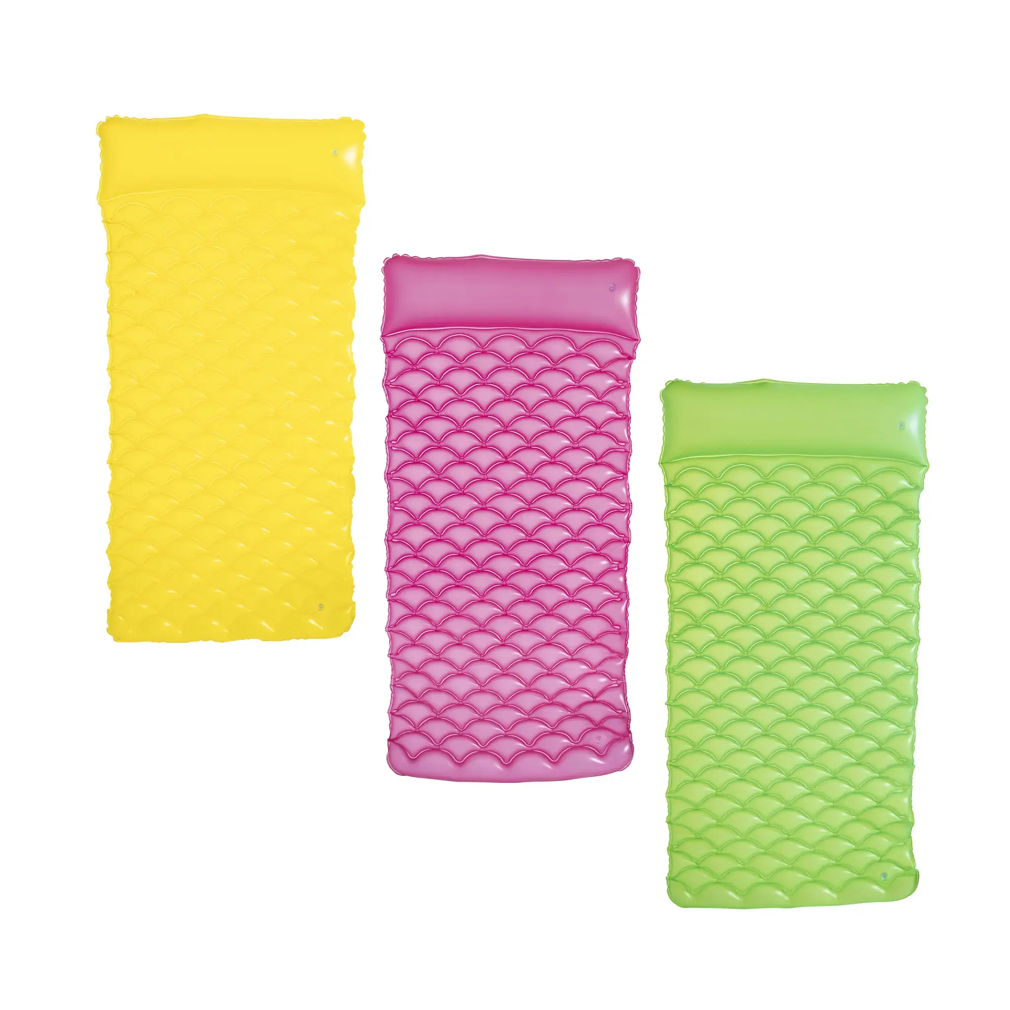 Матрас поставляется в 3 цветовых вариантах (фиолетовый, бирюзовый, голубой), что позволяет подобрать вариант под ваш стиль. Идеален для семейного отдыха, пикников или использования в бассейне.