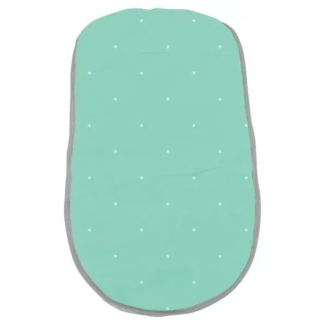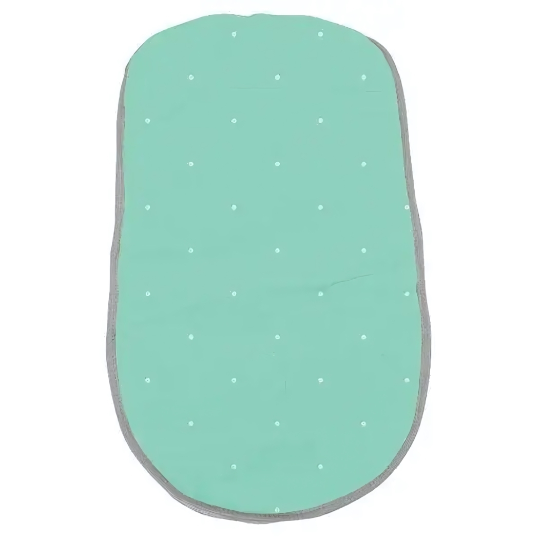 Изделие выполнено в нежном мятном цвете с декоративными белыми точками, создающими эффект градиента. Объёмные края и эргономичная форма обеспечивают плотное прилегание к основанию коляски, предотвращая смещение во время движения.