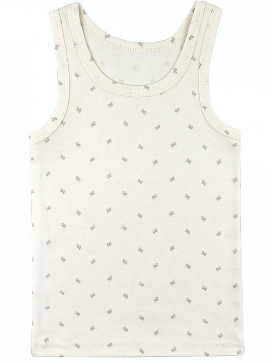 Материал: 100% хлопок (интерлок) — плотное трикотажное полотно, сохраняющее тепло и форму. Майка легко комбинируется с шортами, юбками, брюками или пижамными комплектами. Идеальна как для детского сада, так и для домашнего ношения или прогулок.