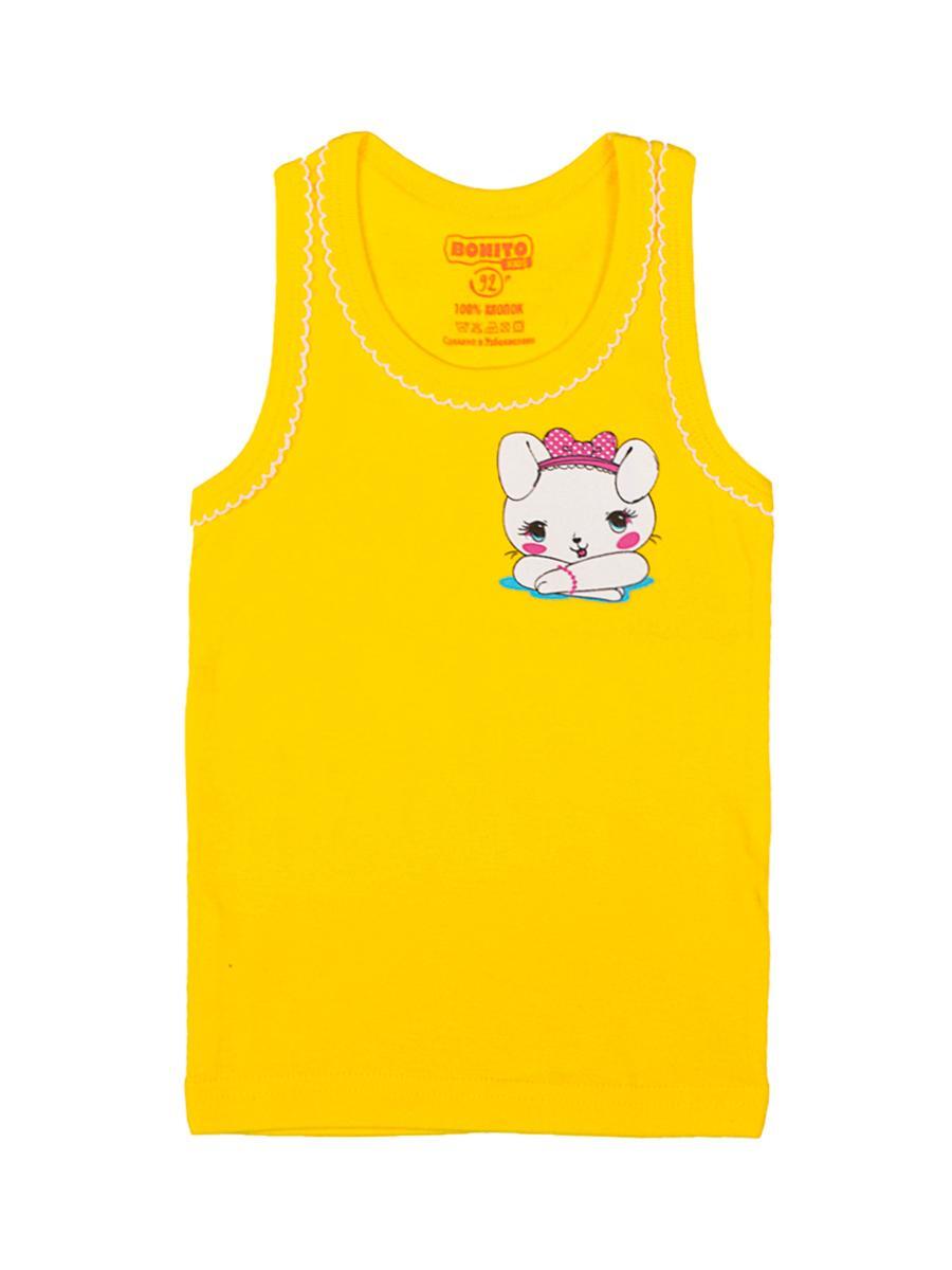 Майка детская из 100% хлопка, желтая, рисунок кролик с бантом, размер 104
