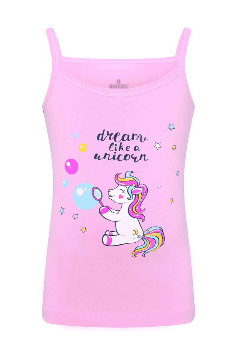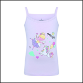 Майка выполнена в ассортименте нежных оттенков — розового, лилового, сиреневого, со сказочными рисунками в разных вариациях. Лёгкая ткань сохраняет форму после стирки и не требует сложного ухода.