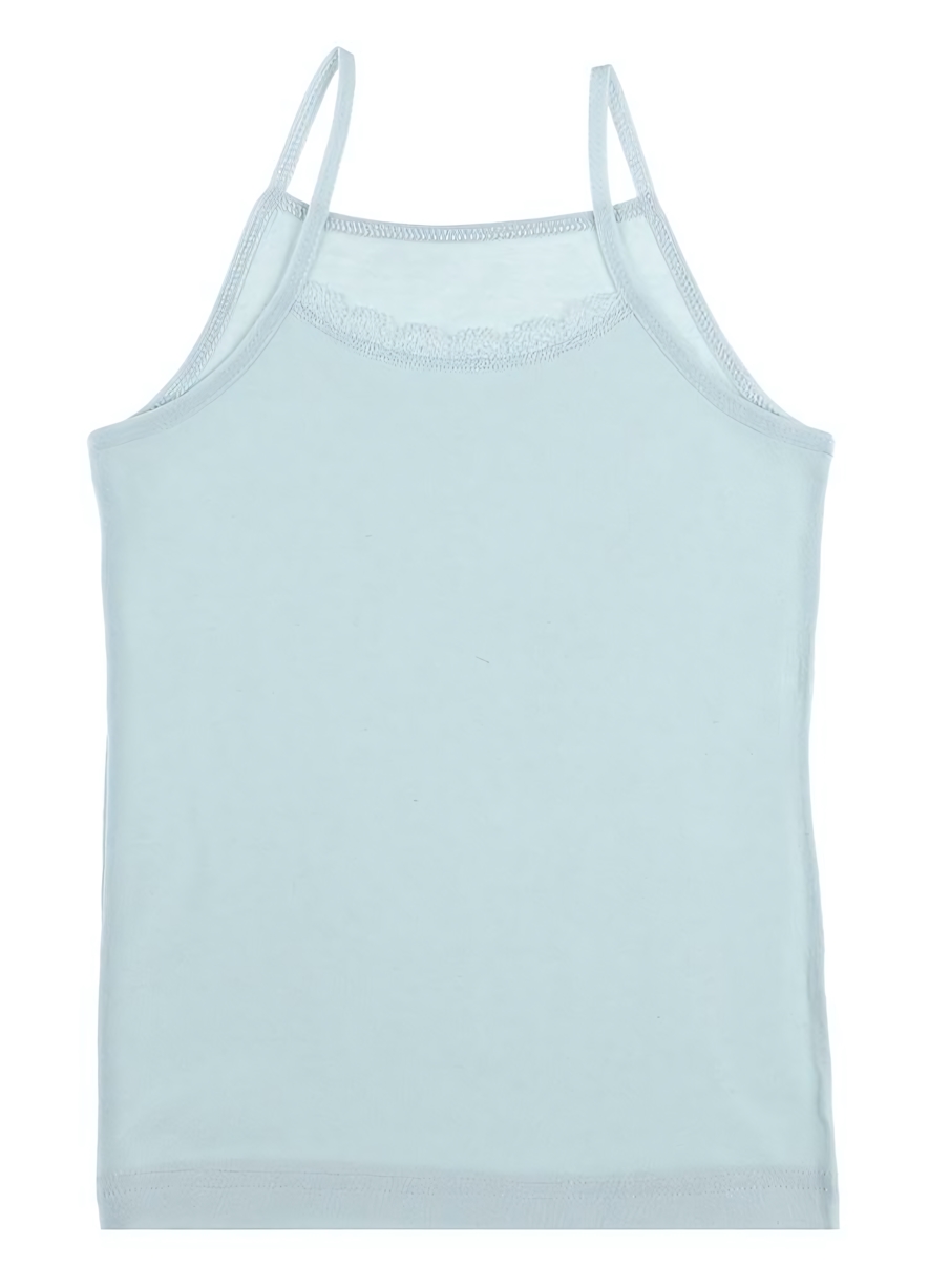 Подойдёт девочкам 8-9 лет (размер 128). Прямой крой и тонкие бретельки обеспечивают удобную посадку, а изящный кружевной край придаёт романтичный акцент.