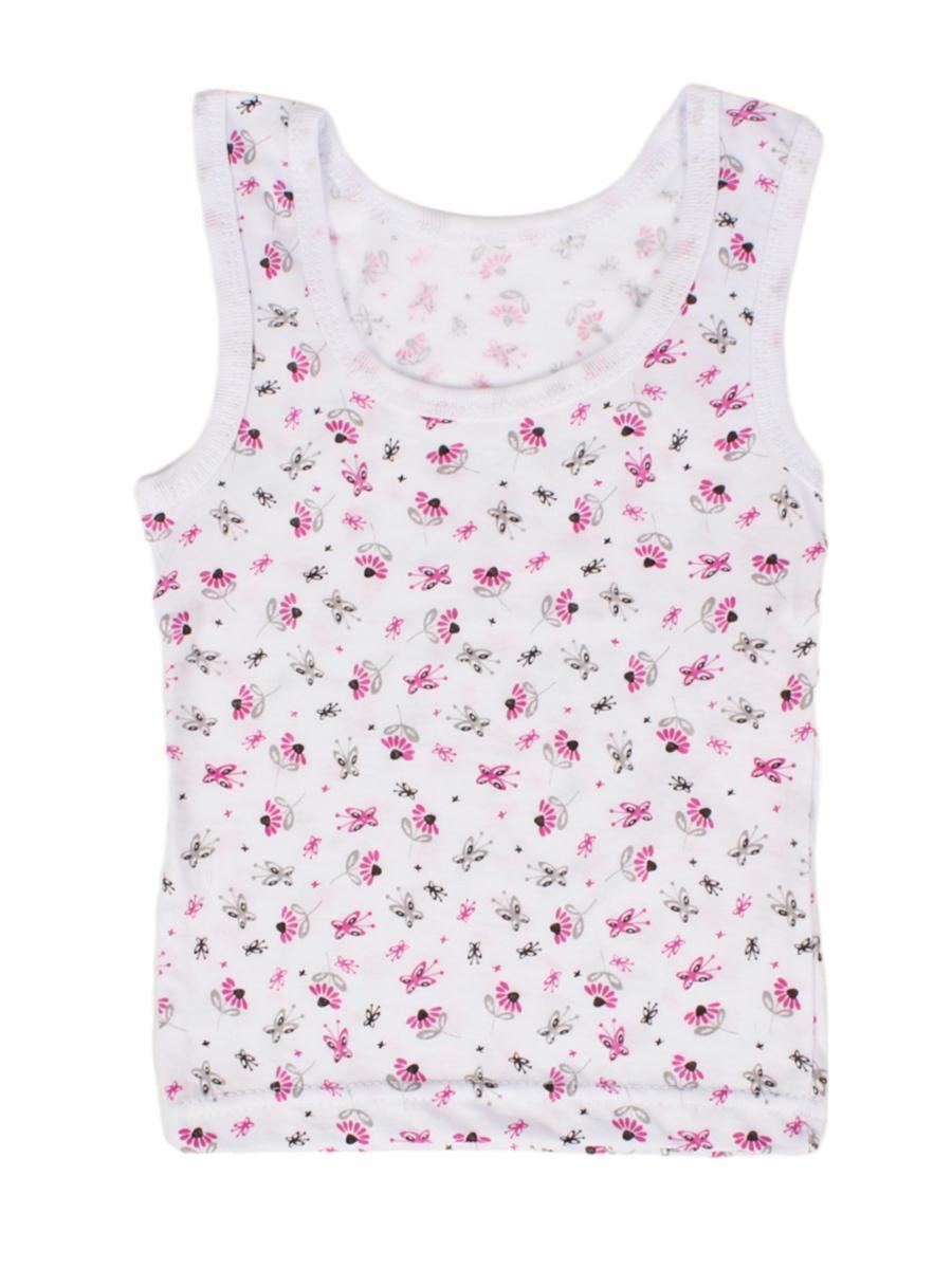 Майка для девочек мягкая, дышащая, размер 32, 100% хлопок, белый с цветочным принтом, бренд amiteks