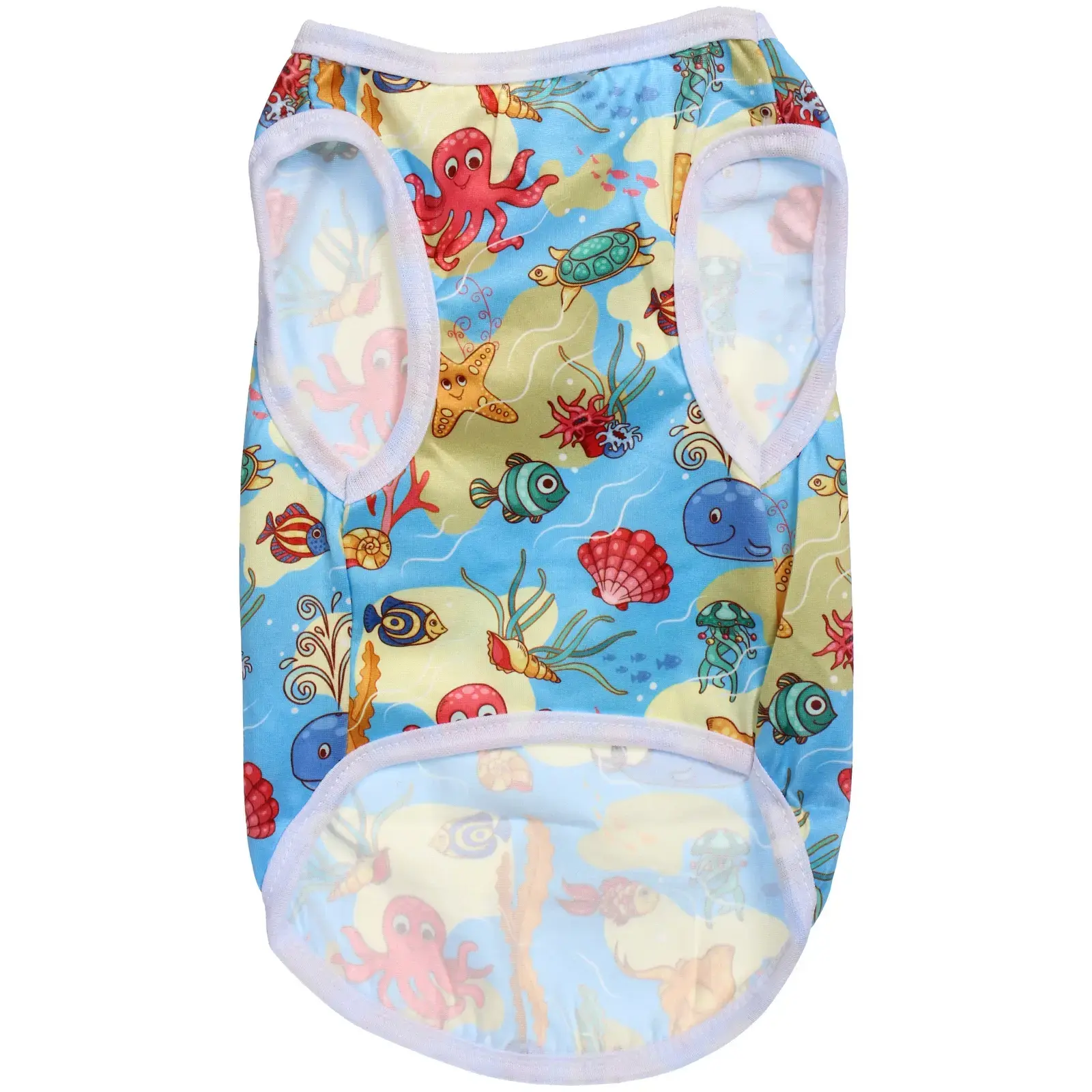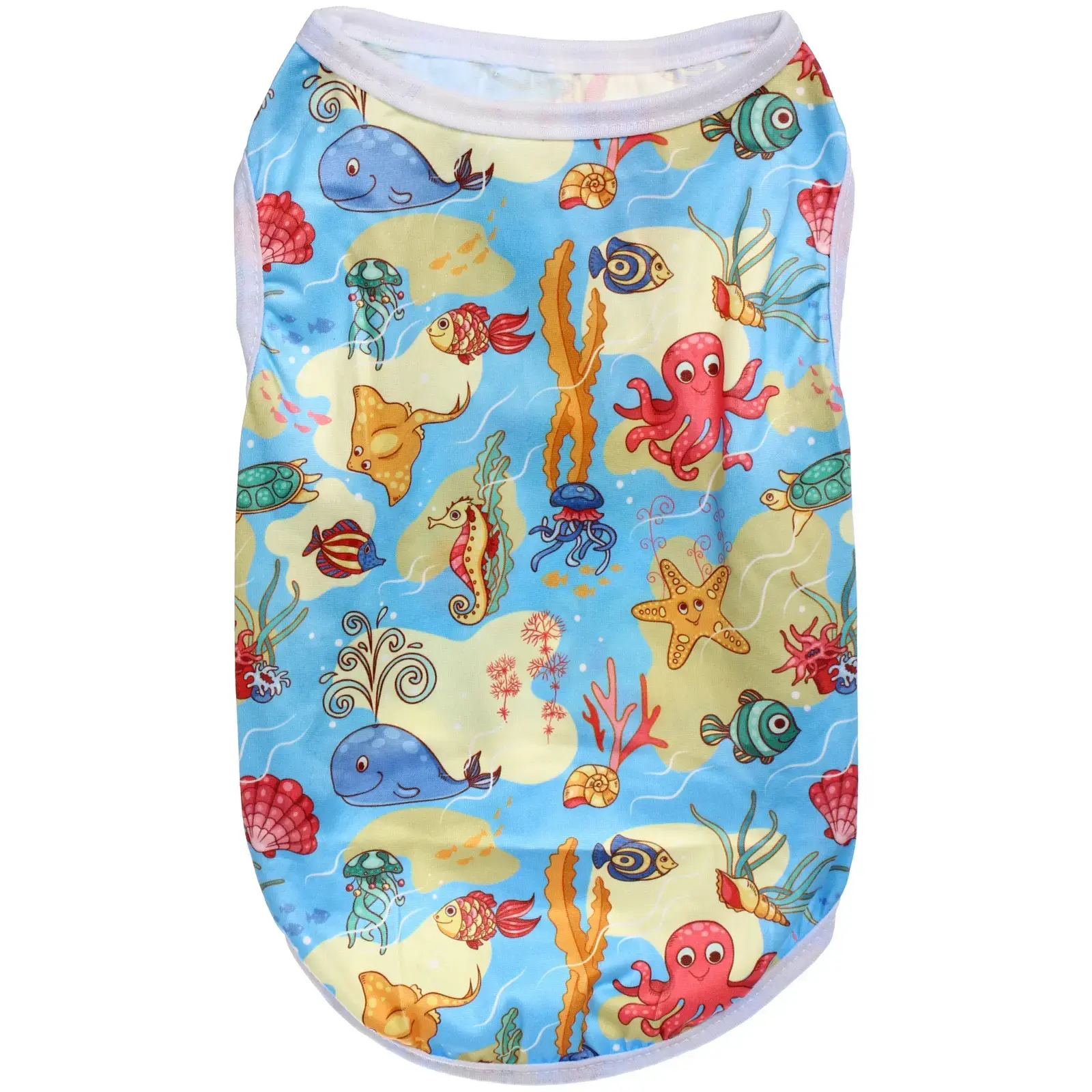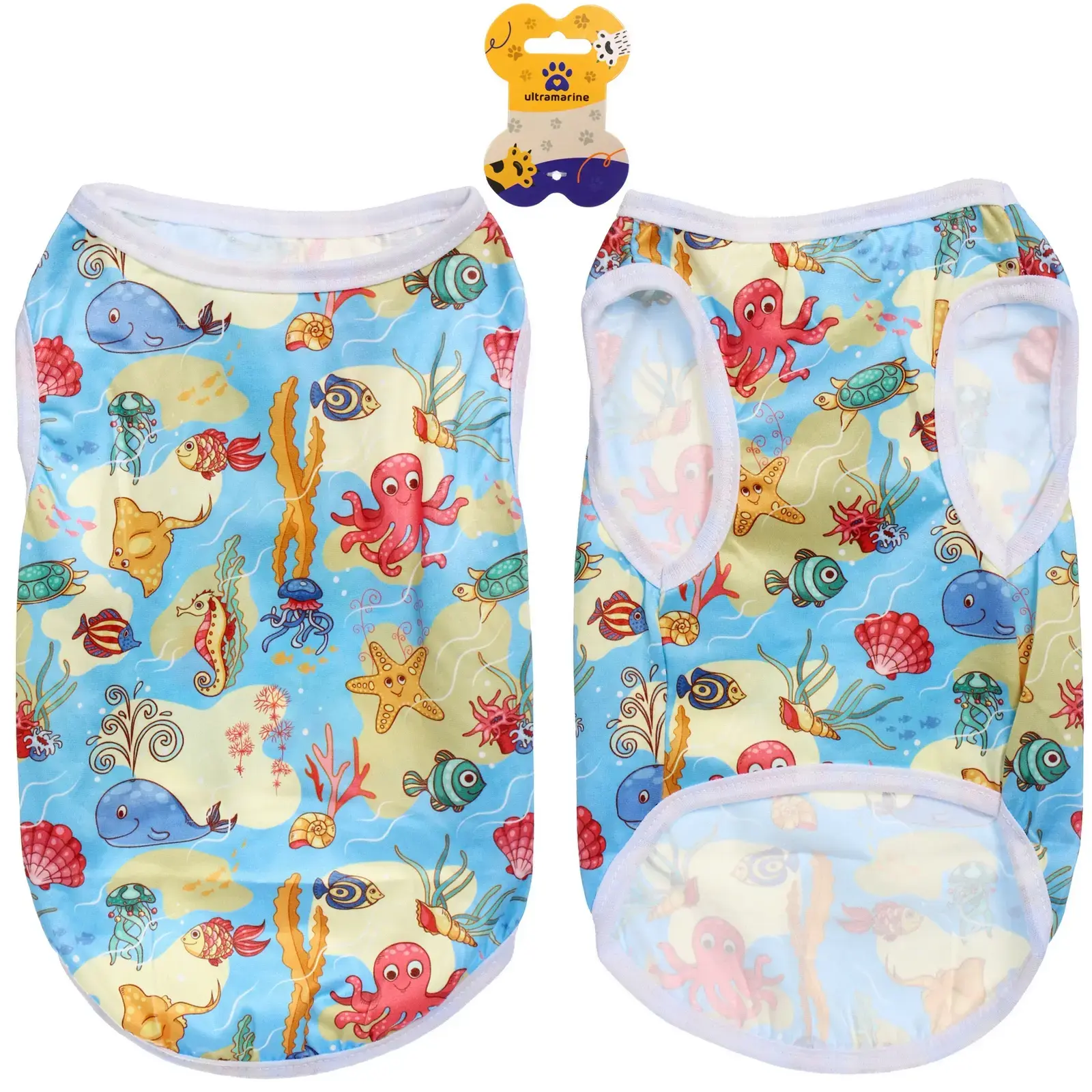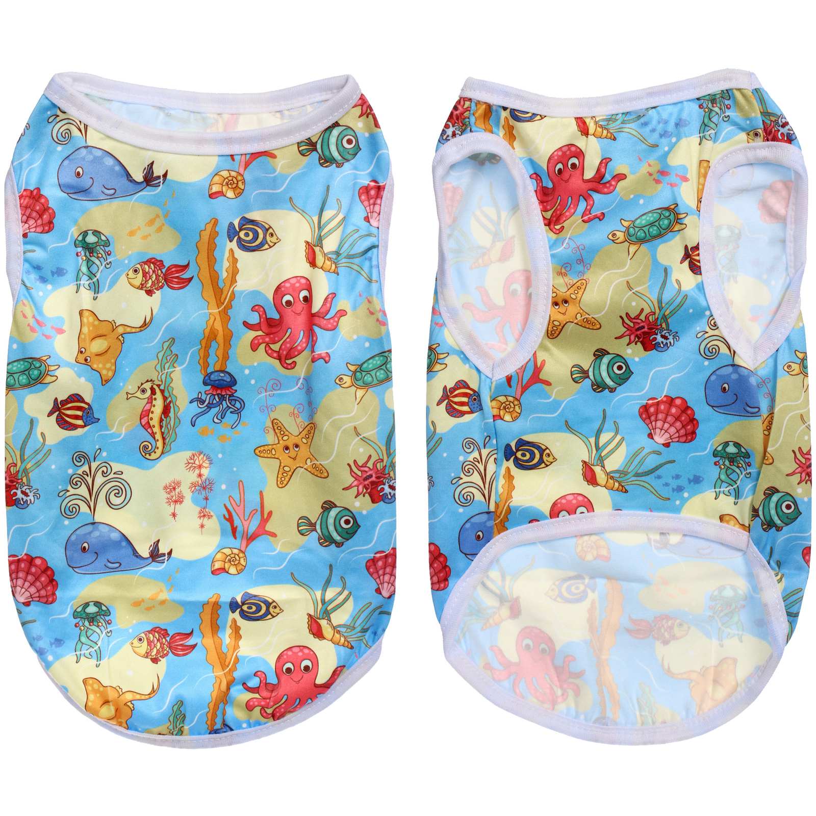 Майка предназначена для повседневного ношения и активного отдыха. Она легко надевается благодаря округлому вырезу и свободному крою, что делает ее удобной для вашего питомца. Подходит для прогулок, игр на свежем воздухе и даже для фотосессий на фоне моря.