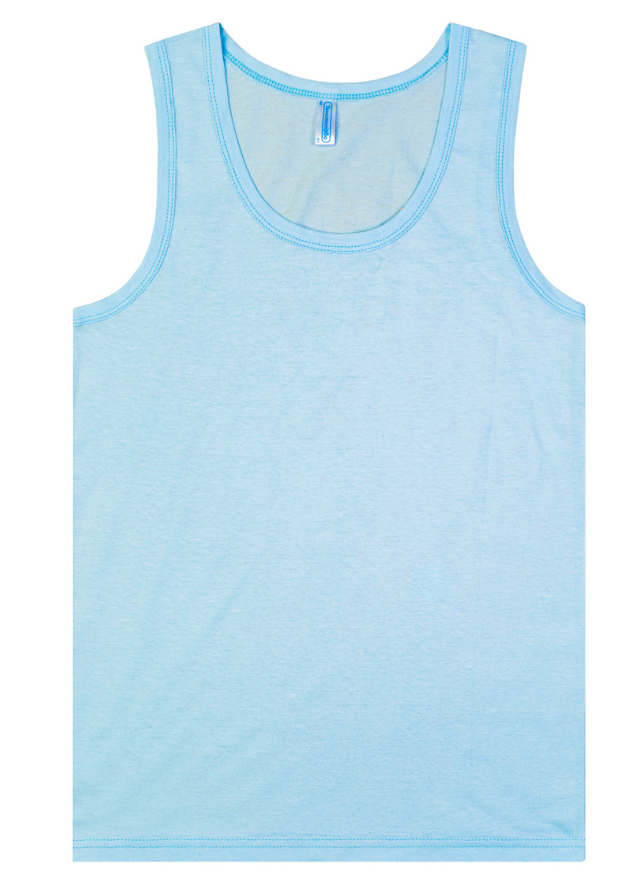 Размер: r 122, подходит детям с ростом около 122 см. Цвет: светло‑голубой, равномерный, без лишних оттенков. Состав: 100 % хлопок, дышащий, мягкий и приятный к коже. Конструкция без рукавов, круглая горловина, широкие бретели – всё, что нужно для максимального комфорта вашего ребёнка.