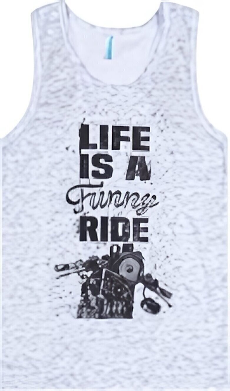 Эта удобная майка для мальчиков создана для повседневного комфорта и активных игр. Натуральный 100% хлопок обеспечивает мягкость и воздухопроницаемость, позволяя коже дышать даже в жаркую погоду. Стильный серый камуфляж дополняется оригинальным принтом «LIFE IS A FUNNY RIDE», что придает изделию индивидуальность и современный вид.