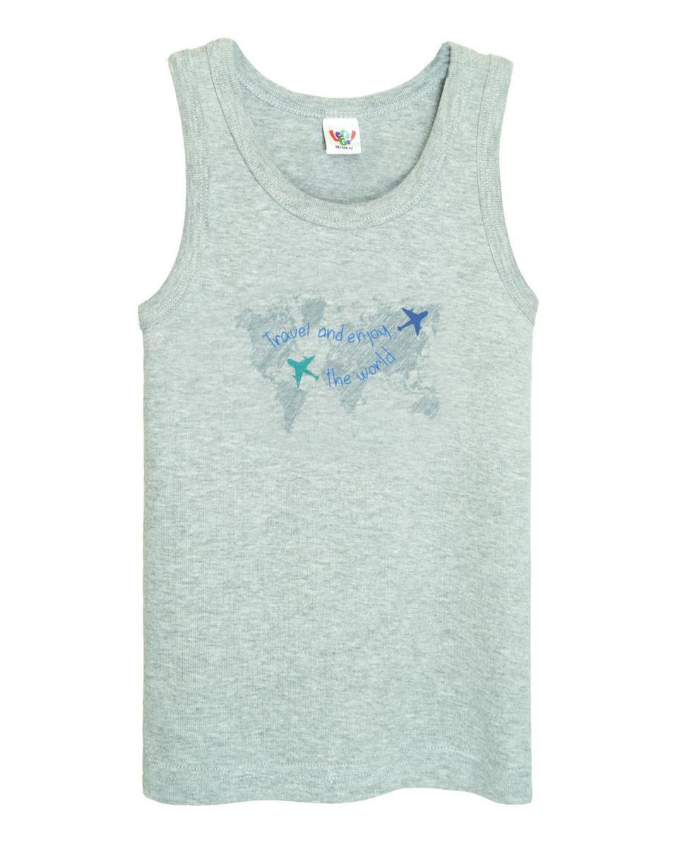 Майка для мальчиков, комфортный хлопок 100 %, светло‑серый, размер 122/128, принт карта мира с самолётами