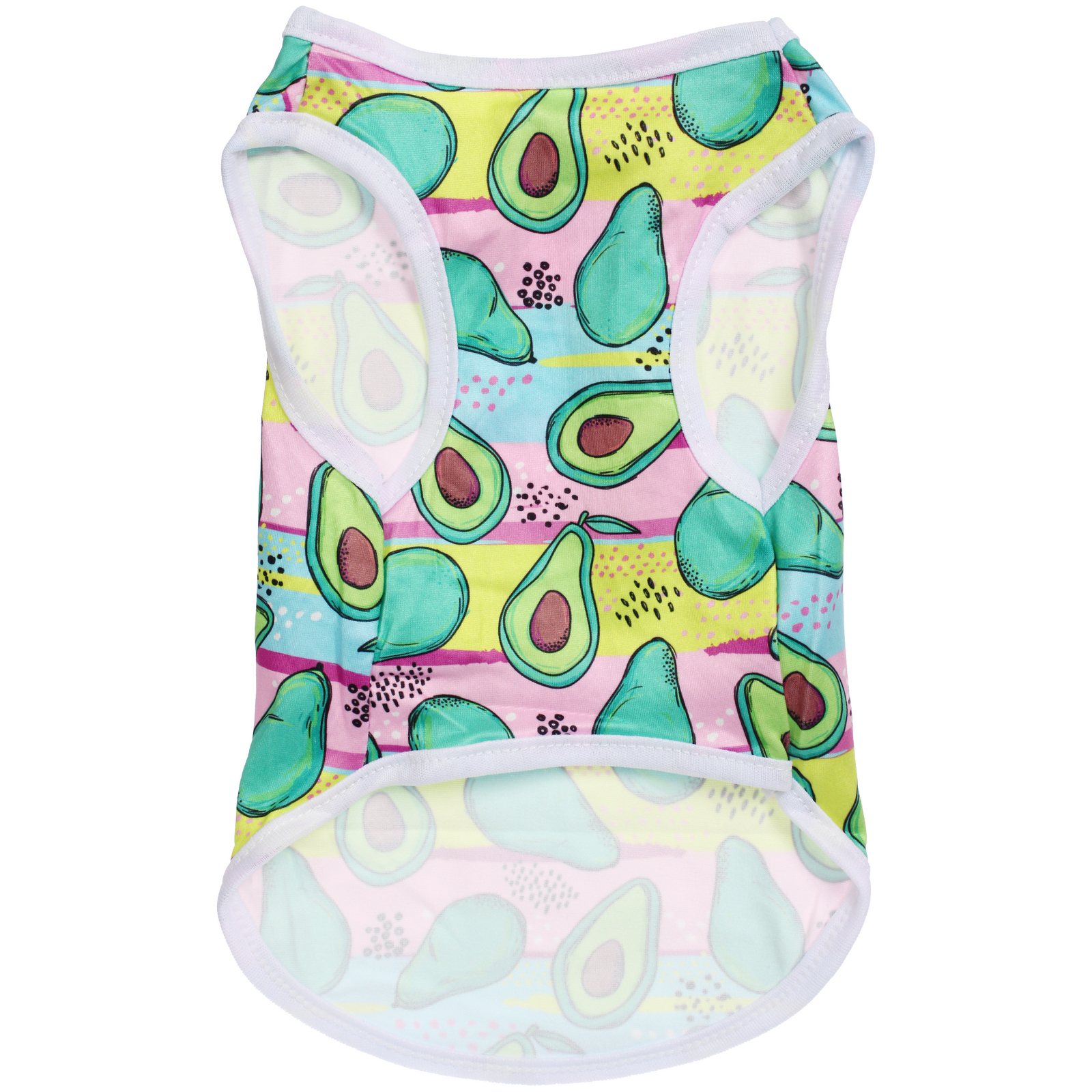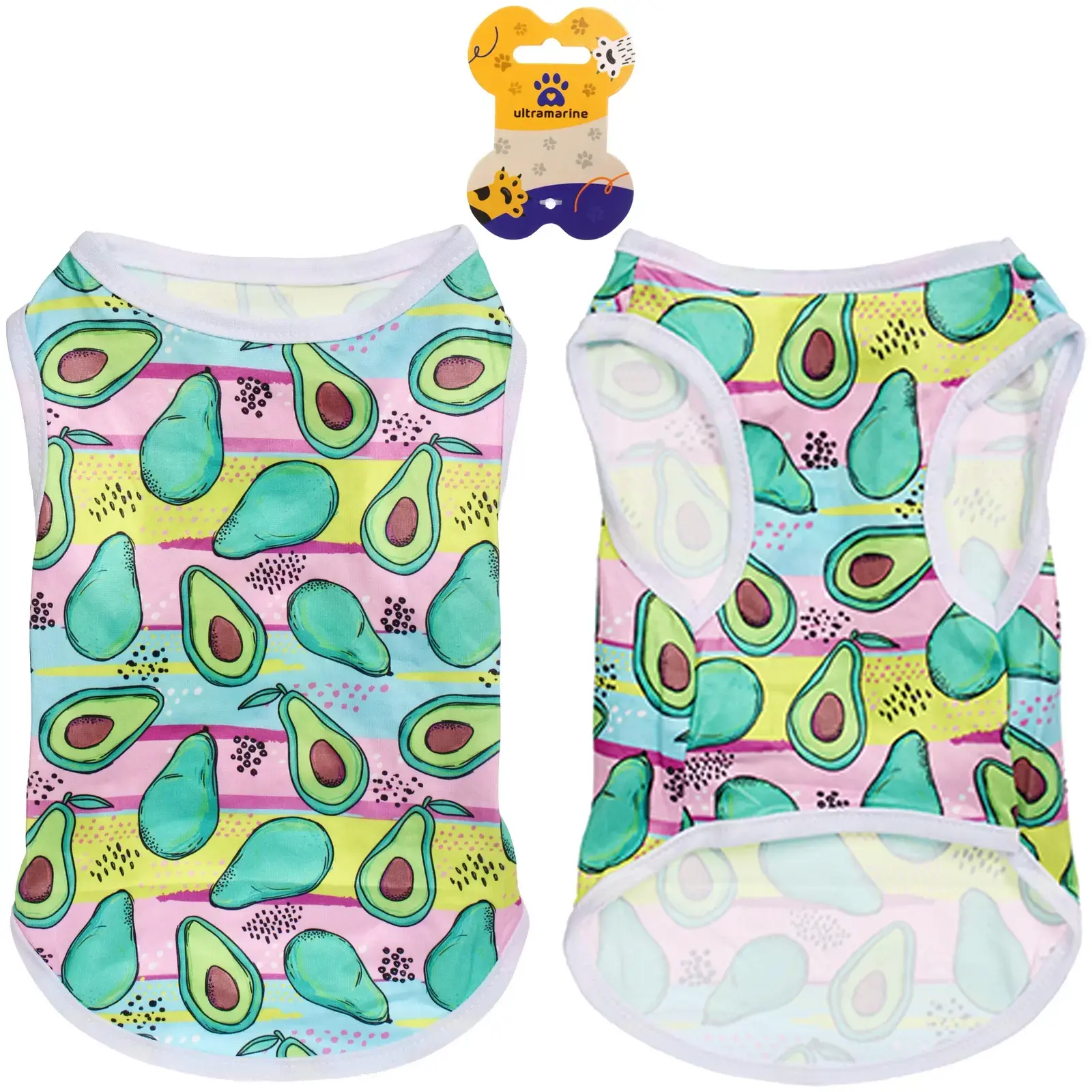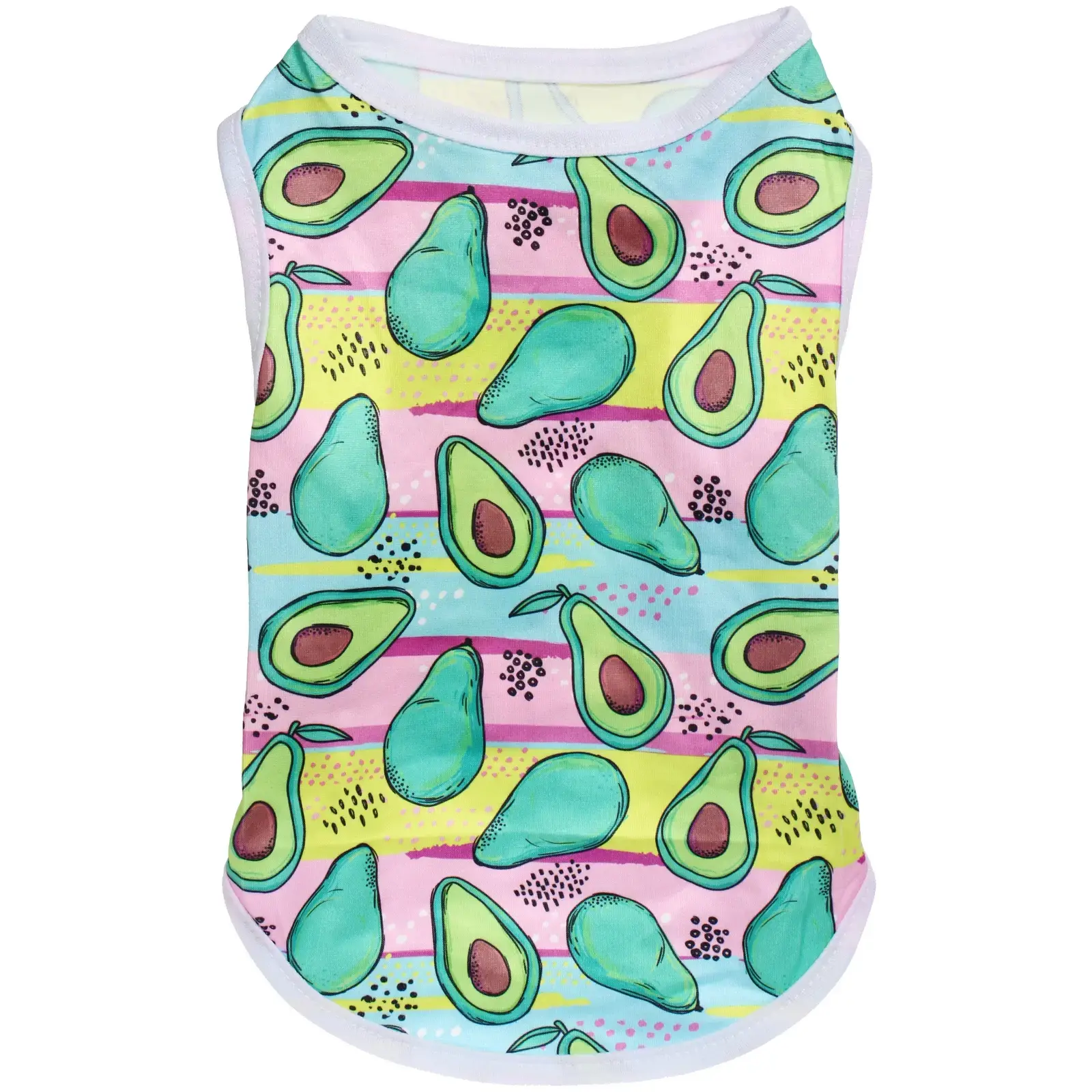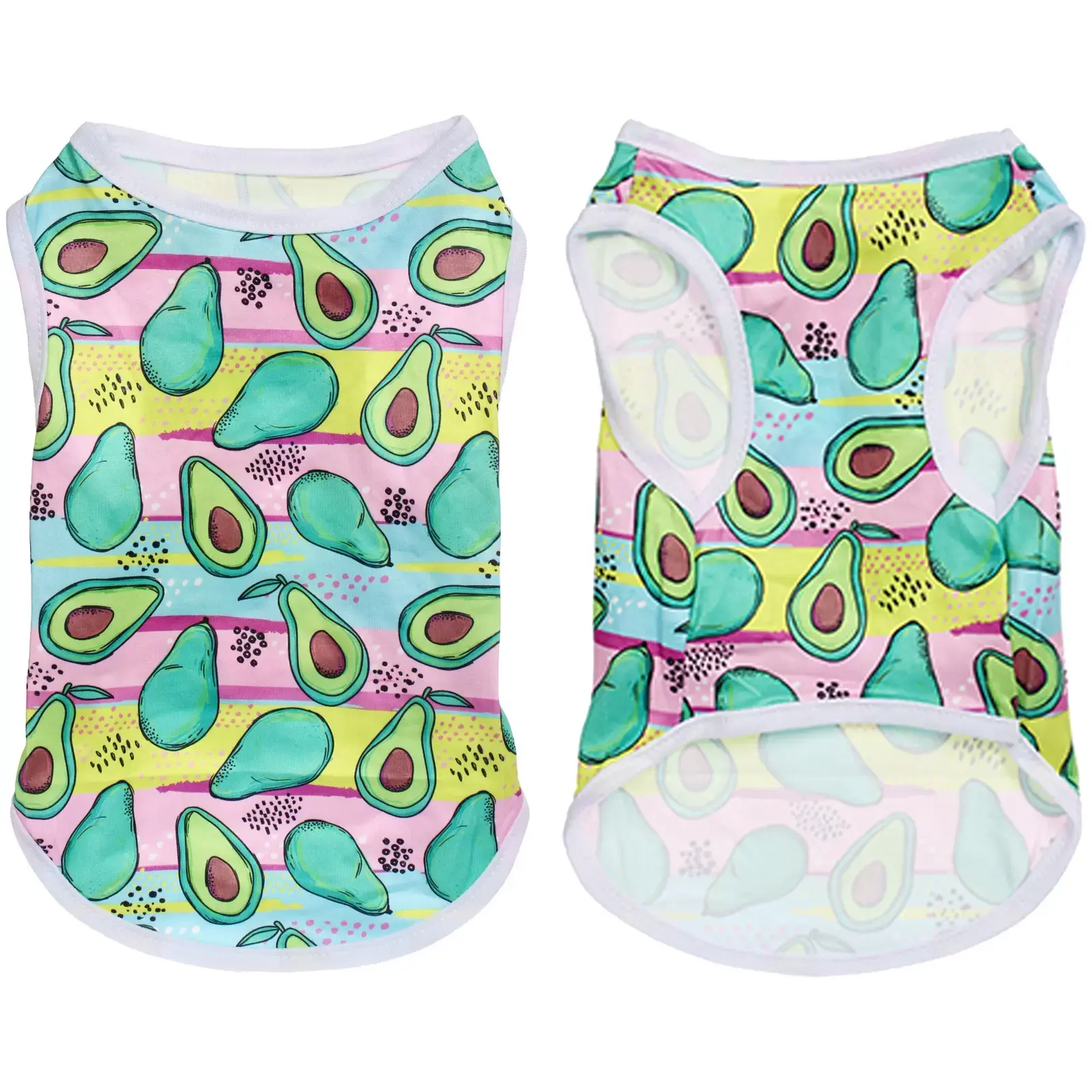 Почему стоит выбрать именно эту майку? Во-первых, ее яркий цветной дизайн с изображением авокадо привлечет внимание и сделает вашего питомца центром внимания на прогулке. Во-вторых, легкий и дышащий материал позволяет собаке не перегреваться в теплую погоду. В-третьих, майка легко стирается и быстро сохнет, что делает ее практичным выбором для активных владельцев.