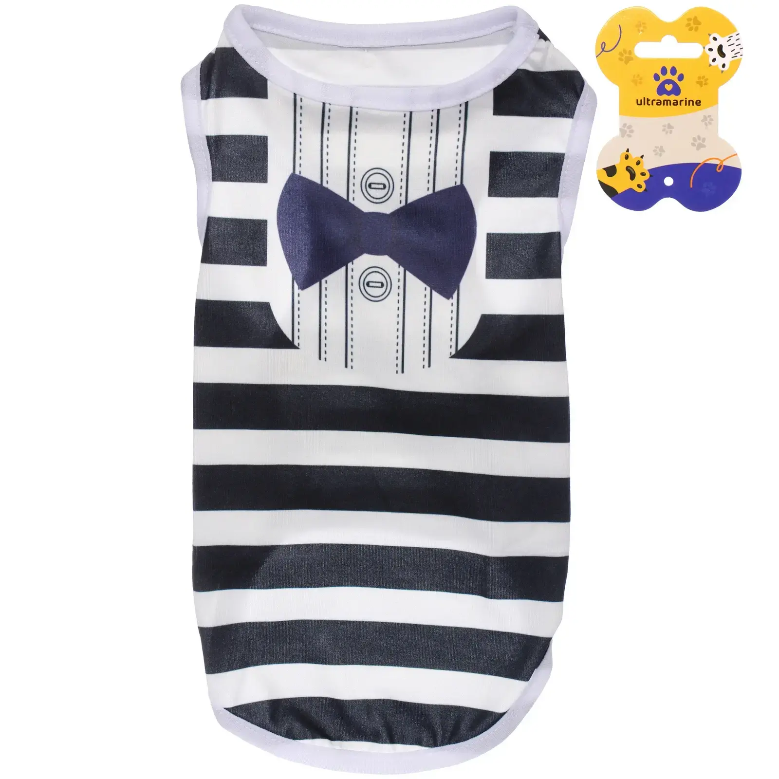 Размер S идеально подходит для мелких пород, таких как чихуахуа или йоркширский терьер. Майка выполнена в черно-белых цветах, что делает её универсальной и легко комбинируемой с другими аксессуарами. Не упустите возможность порадовать своего четвероногого друга стильной и удобной одеждой!