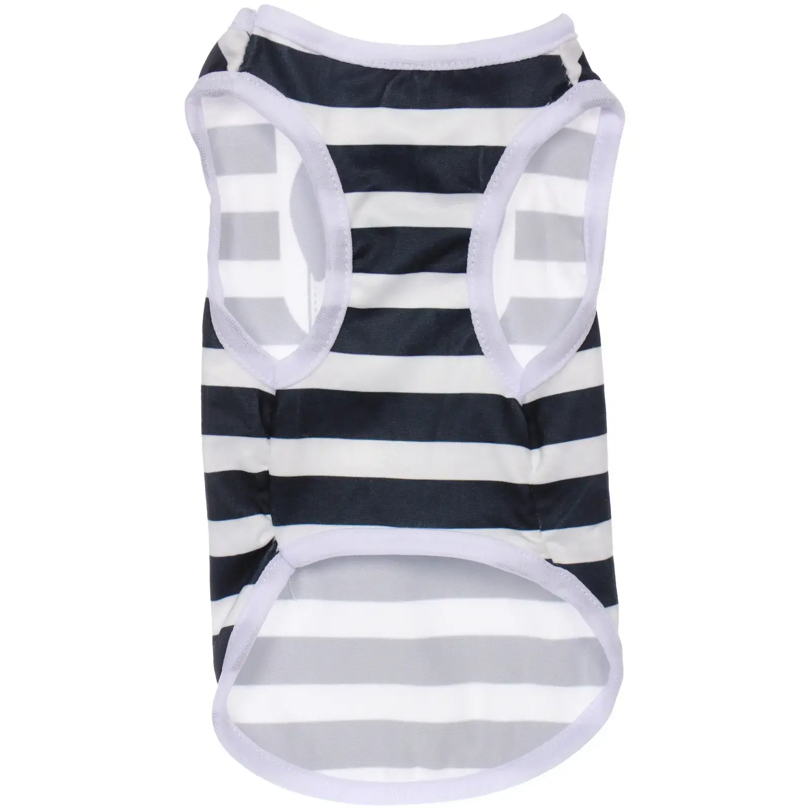 Майка выполнена в черно-белую полоску, что делает ее универсальной для любого стиля. Размер XS идеально подходит для самых маленьких собак. Обратите внимание, что данная модель не имеет рукавов и закрытого низа, что обеспечивает дополнительный комфорт вашему питомцу.