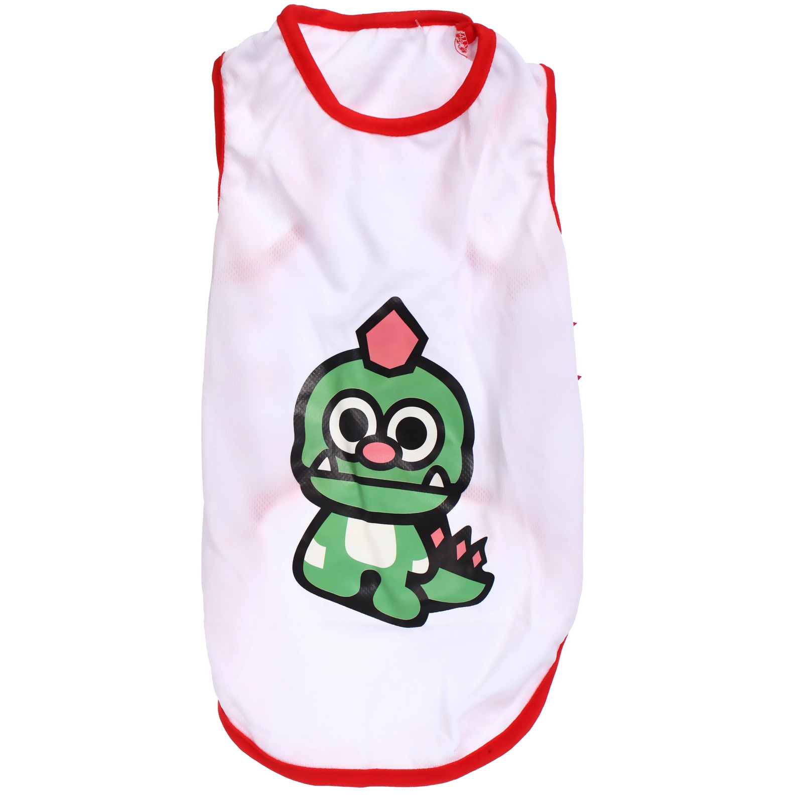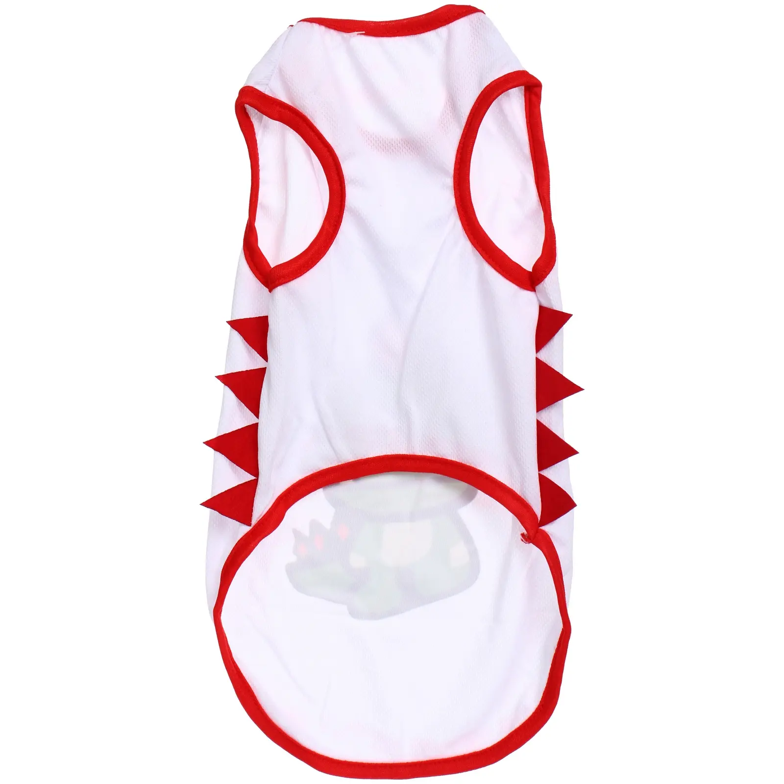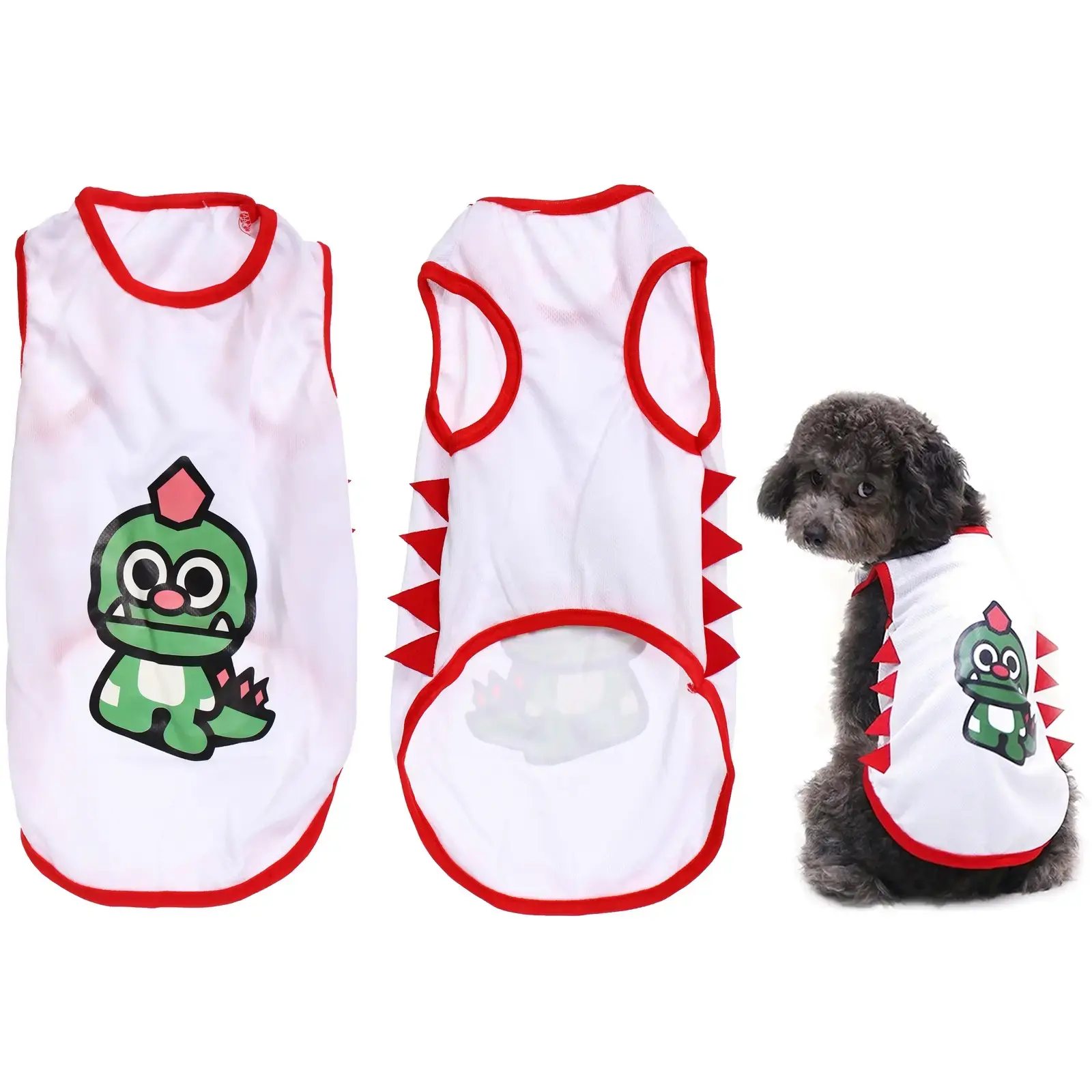 Почему стоит выбрать именно эту майку? Во-первых, ее оригинальный дизайн с изображением мультяшного динозавра привлечет внимание окружающих и сделает вашего питомца звездой прогулки. Во-вторых, легкий материал обеспечивает отличную воздухопроницаемость, что особенно важно в жаркую погоду. В-третьих, красные акценты и шипы по бокам добавляют игривости и стиля, делая майку не только практичной, но и модной.