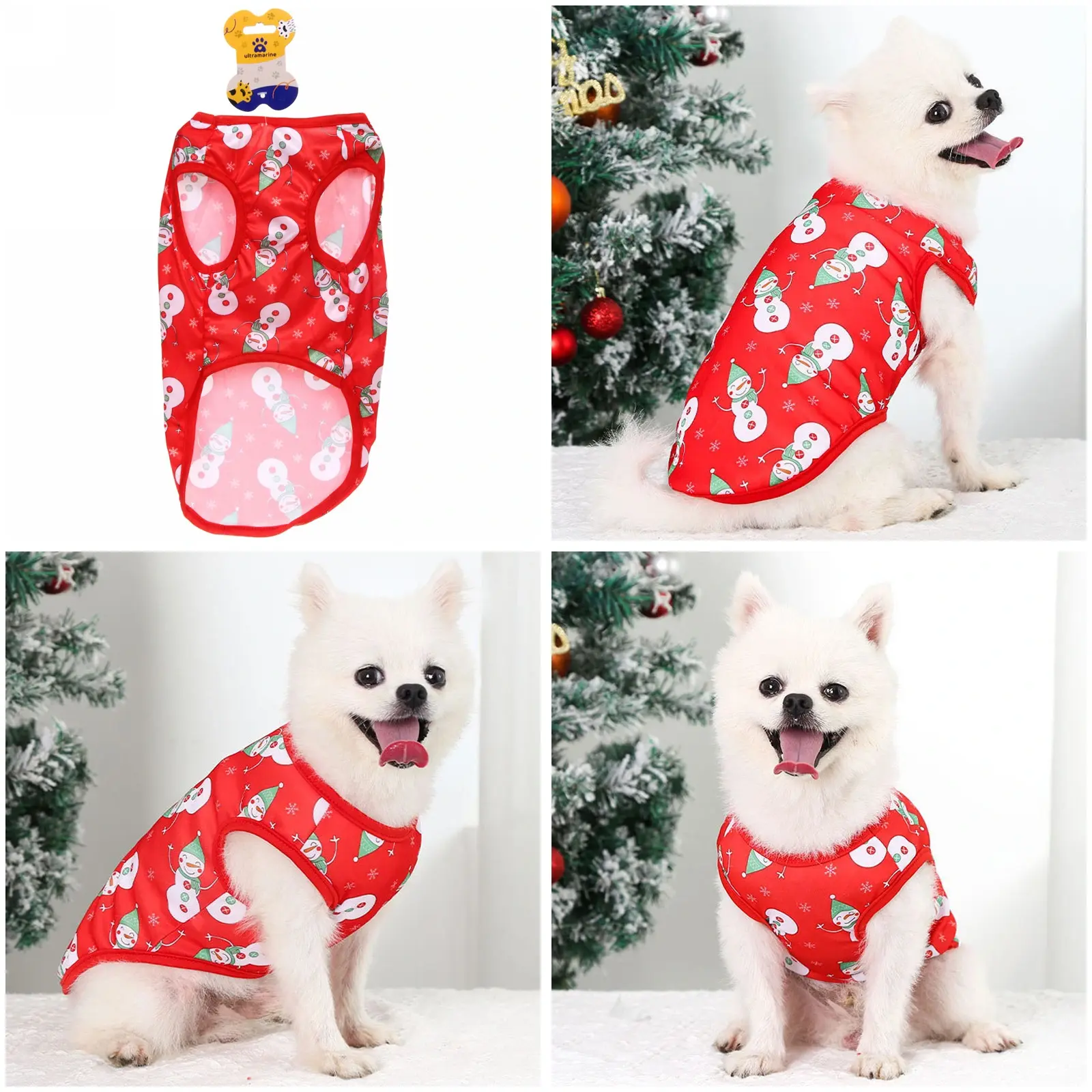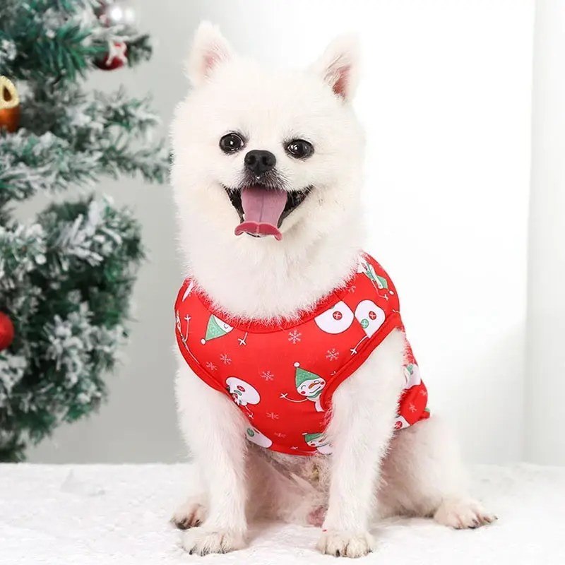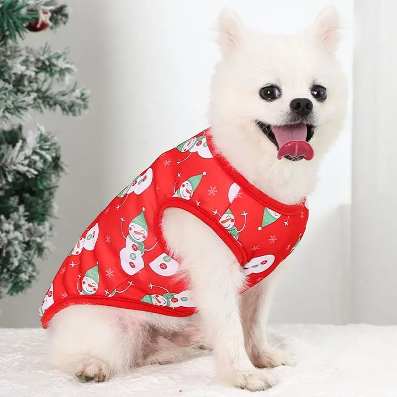 Майка для собаки 'Новогодний БУМ-Снеговики', размер XL (50*40см), красная
