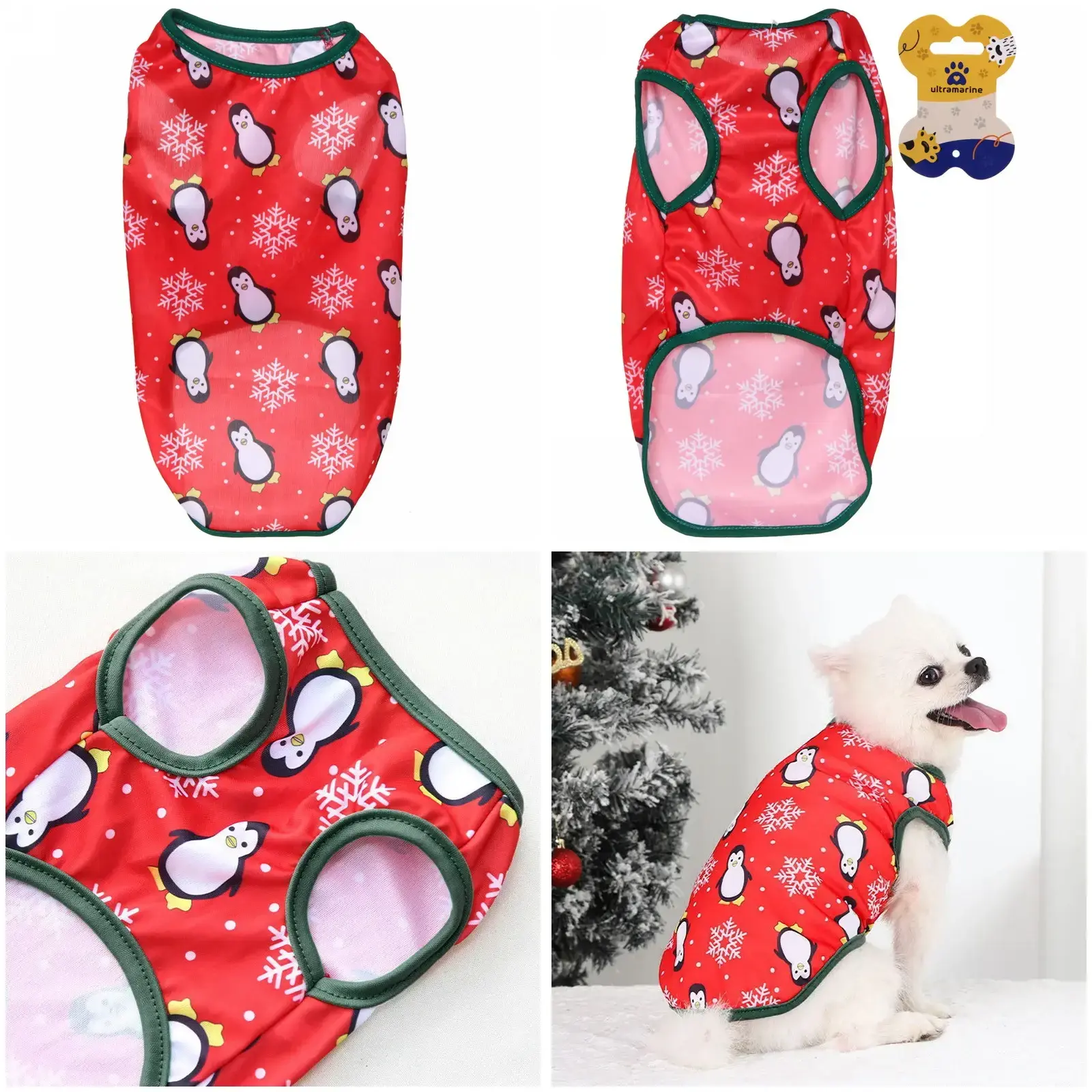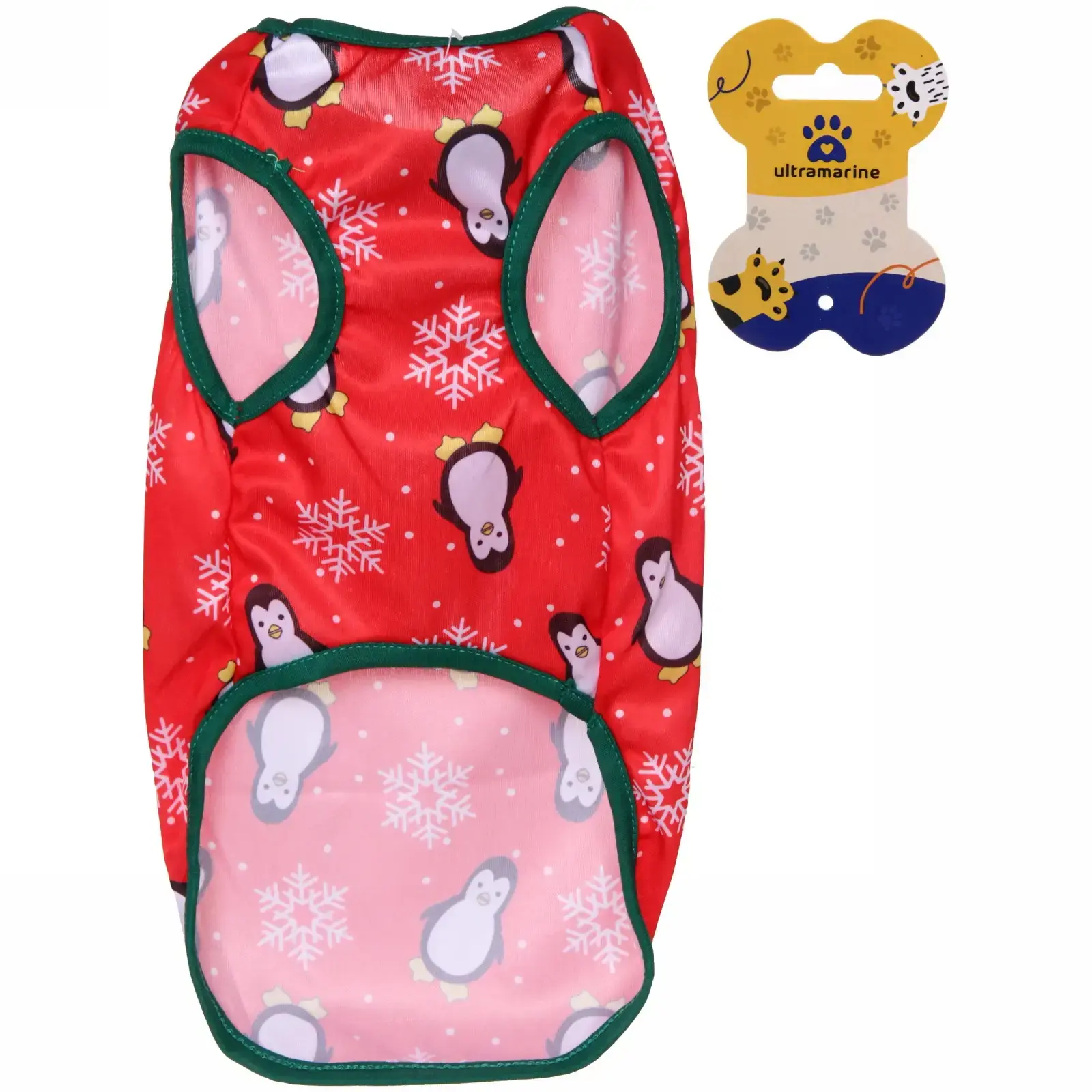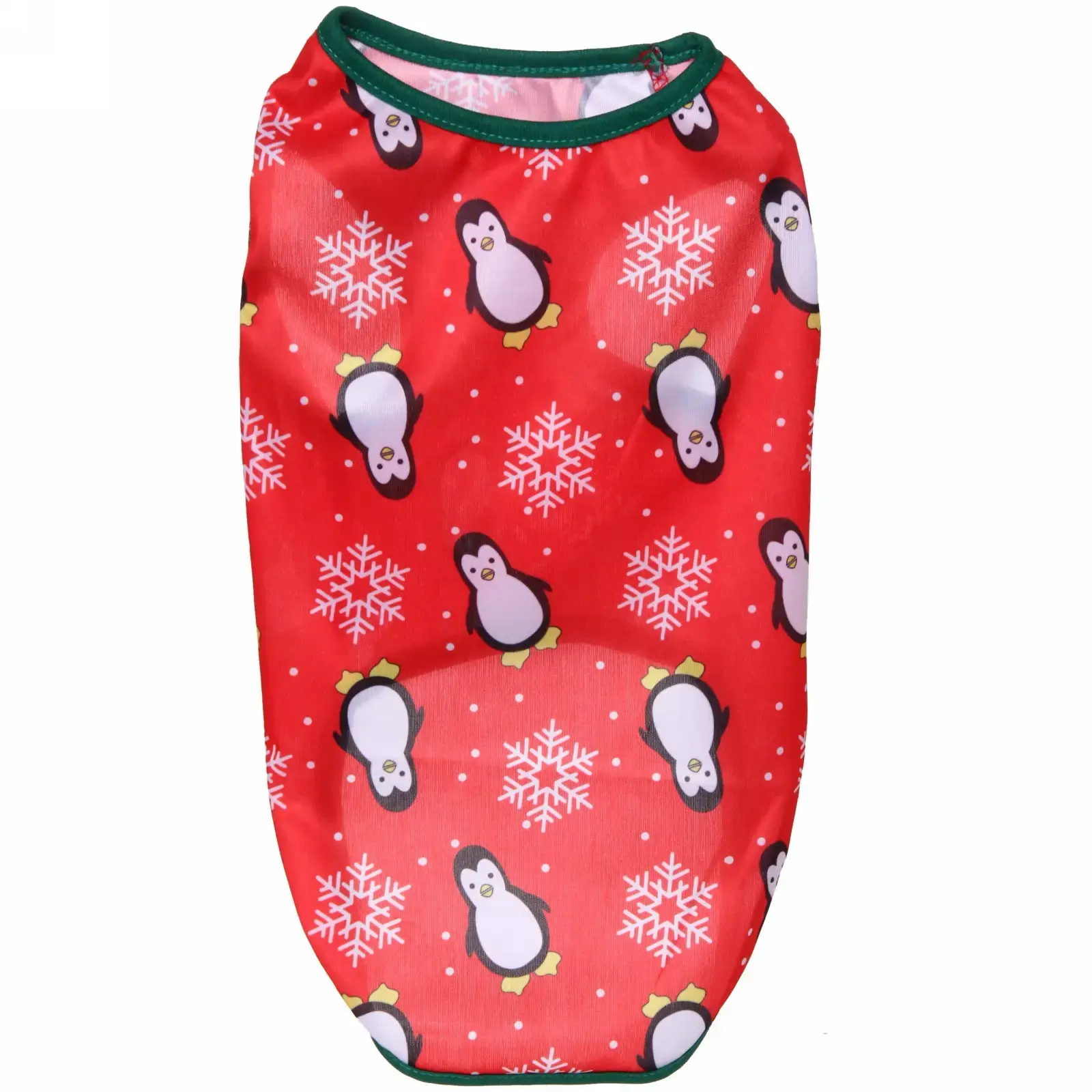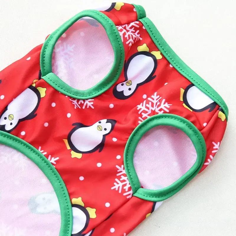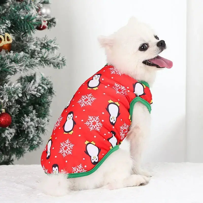 Порадуйте своего четвероногого друга стильной майкой с праздничным принтом. Яркий дизайн с пингвинами и снежинками создаст неповторимую атмосферу зимних праздников.