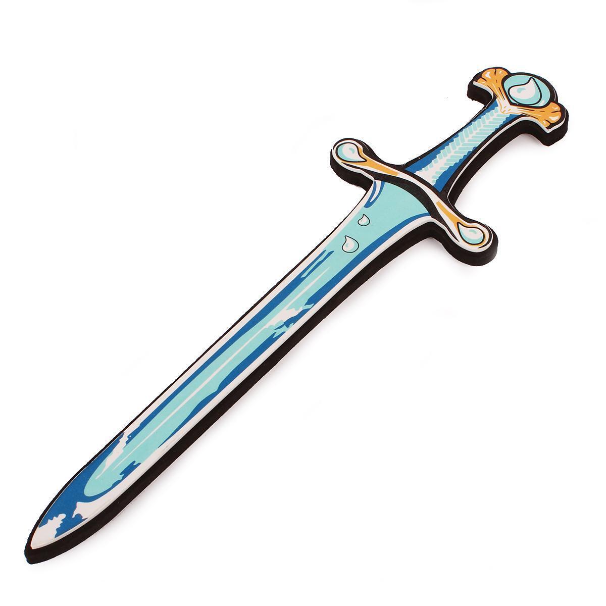 Лезвие и рукоятка меча оформлены в ярких голубых, белых и золотых тонах. Украшения в виде капель и узоров, напоминающих воду, выделяют меч среди других игрушек, подчеркивая оригинальность и внимание к деталям. Материал EVA обеспечивает долговечность и лёгкий вес — меч не гнётся и не ломается при обычной нагрузке.