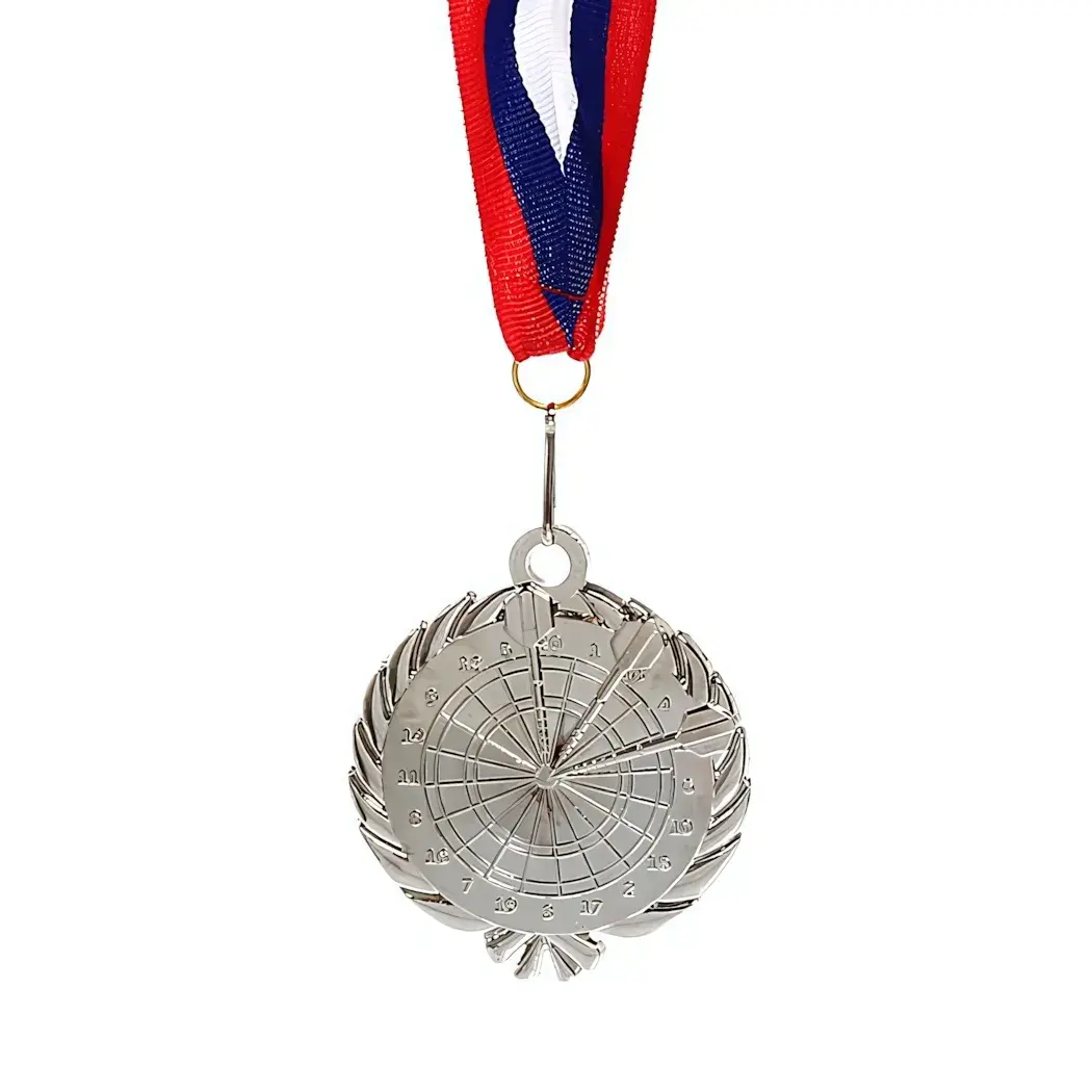 Медаль спортивная 'Дартс' 6см, серебристая, с лентой красно-белой