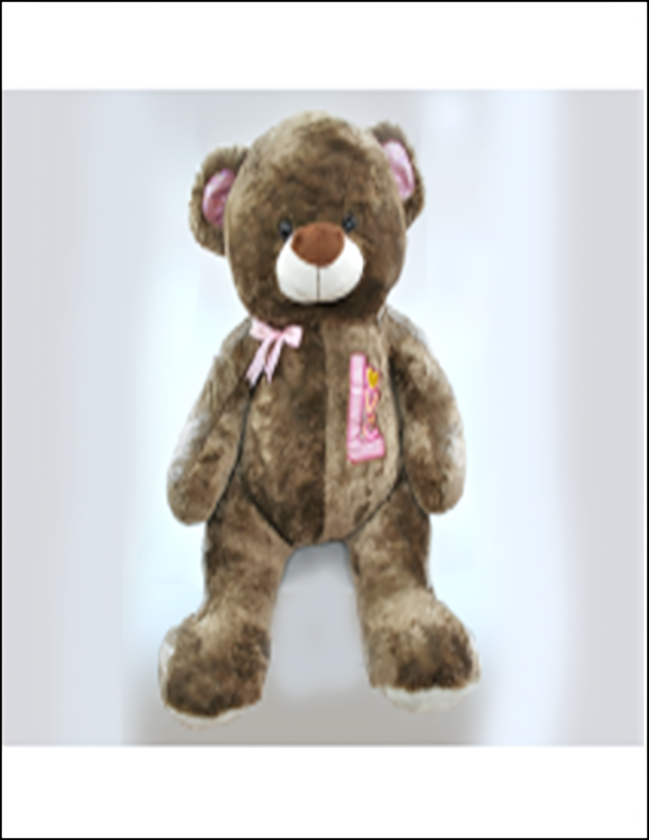 Мягкая игрушка медведь большая 115x125x120 см, коричневый, с розовым бантом и нашивкой "L"