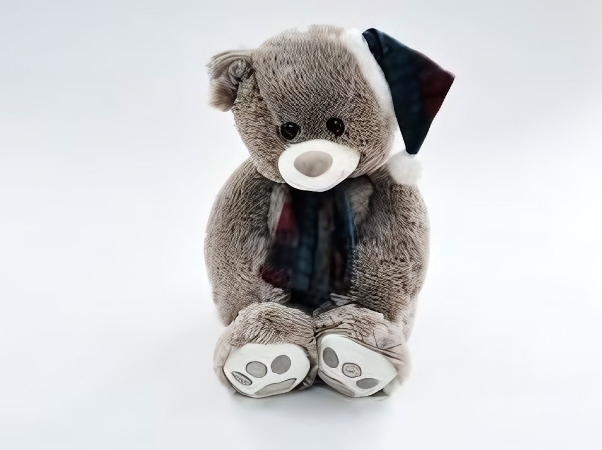 Этот плюшевый медведь размером 30х50х42 см мгновенно покоряет сердце и дарит ощущение тепла и уюта. Мягкий на ощупь плюш, нежный мех и трогательные детали делают его идеальным подарком для детей и взрослых. Уютная шапка с узором и шарф в гармоничных цветах подчёркивают зимнее настроение и создают особую атмосферу.