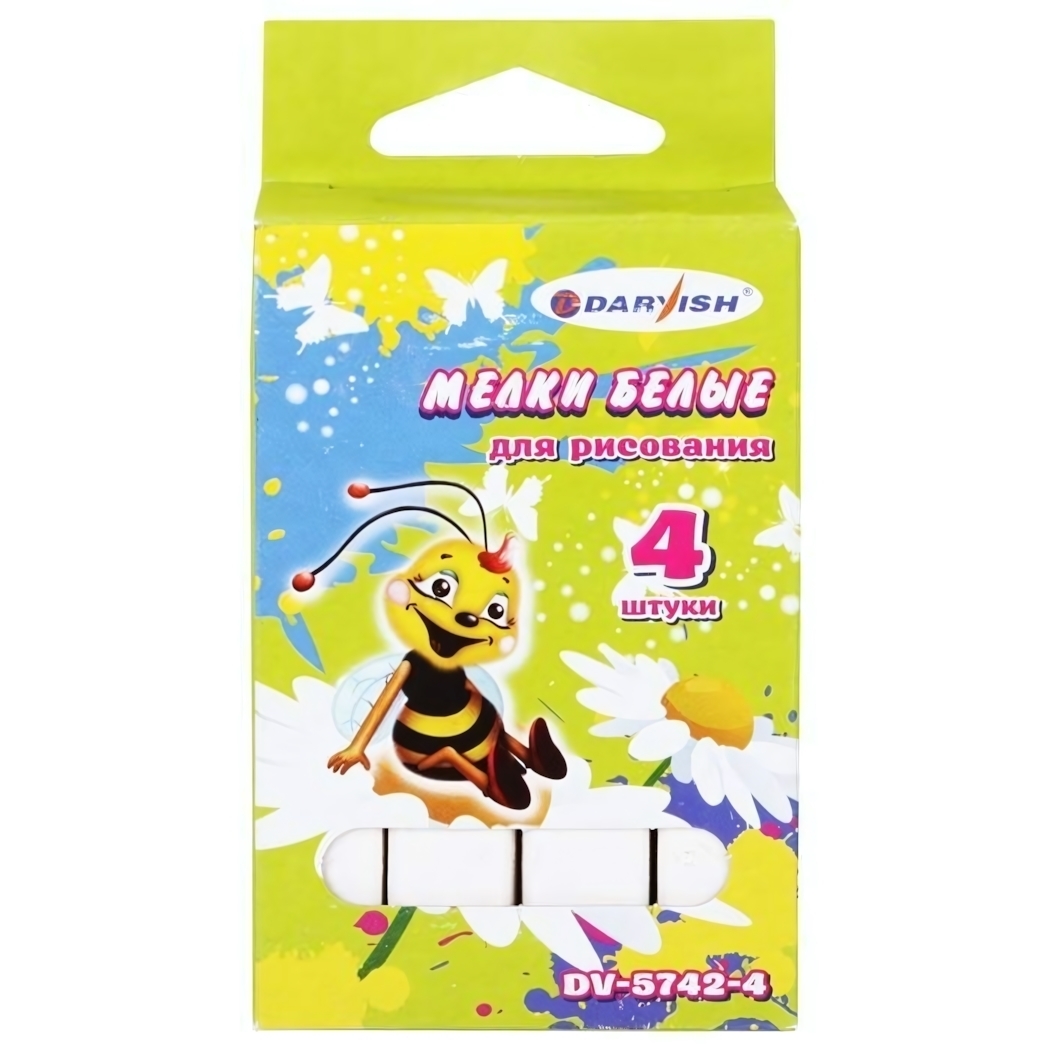 Мел белый прямоугольный «DV-5742-4», 4 шт., натуральный состав, для рисования