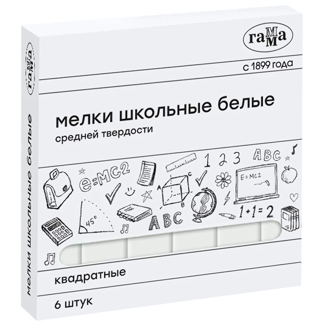 Набор из 6 квадратных белых мелков ГАММА обеспечивает надежное и комфортное письмо на школьных и досках для рисования на асфальте. Эти мелки средней твердости подходят как для учебных заведений, так и для творческих занятий, гарантируя четкий след и легкое стирание без пыли. Удобная форма и натуральный состав делают их безопасными для детей старше 3 лет, а прочная коробка обеспечивает удобство хранения и транспортировки.