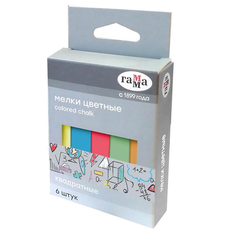 Мел цветной школьный Гамма, 6 шт, квадратный, мягкий, для рисования и письма