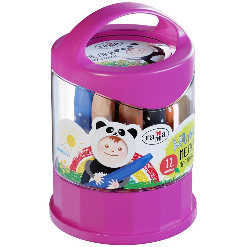 Мелки масляные «Малыш», 12 цветов, шестигранные, пластиковый стакан-подставка, 75 мм