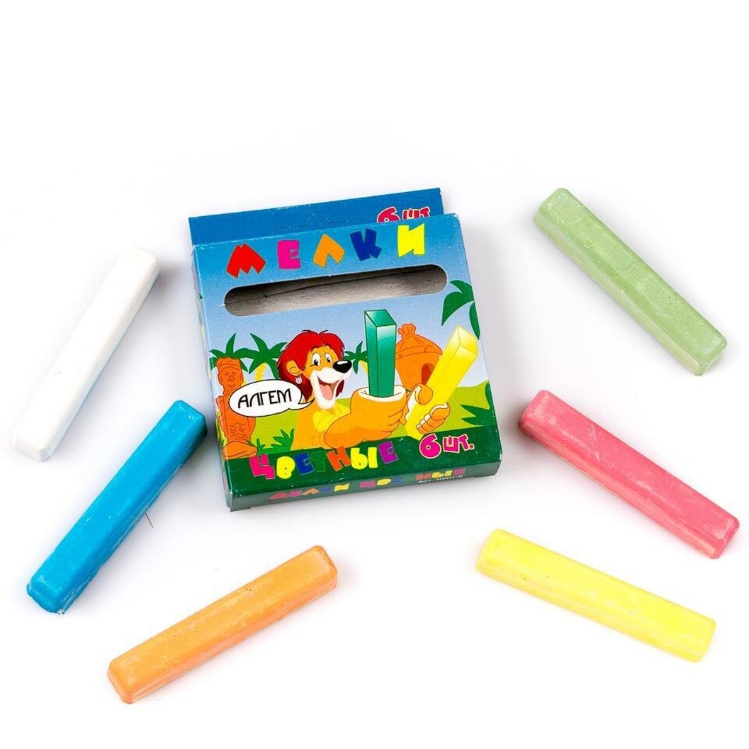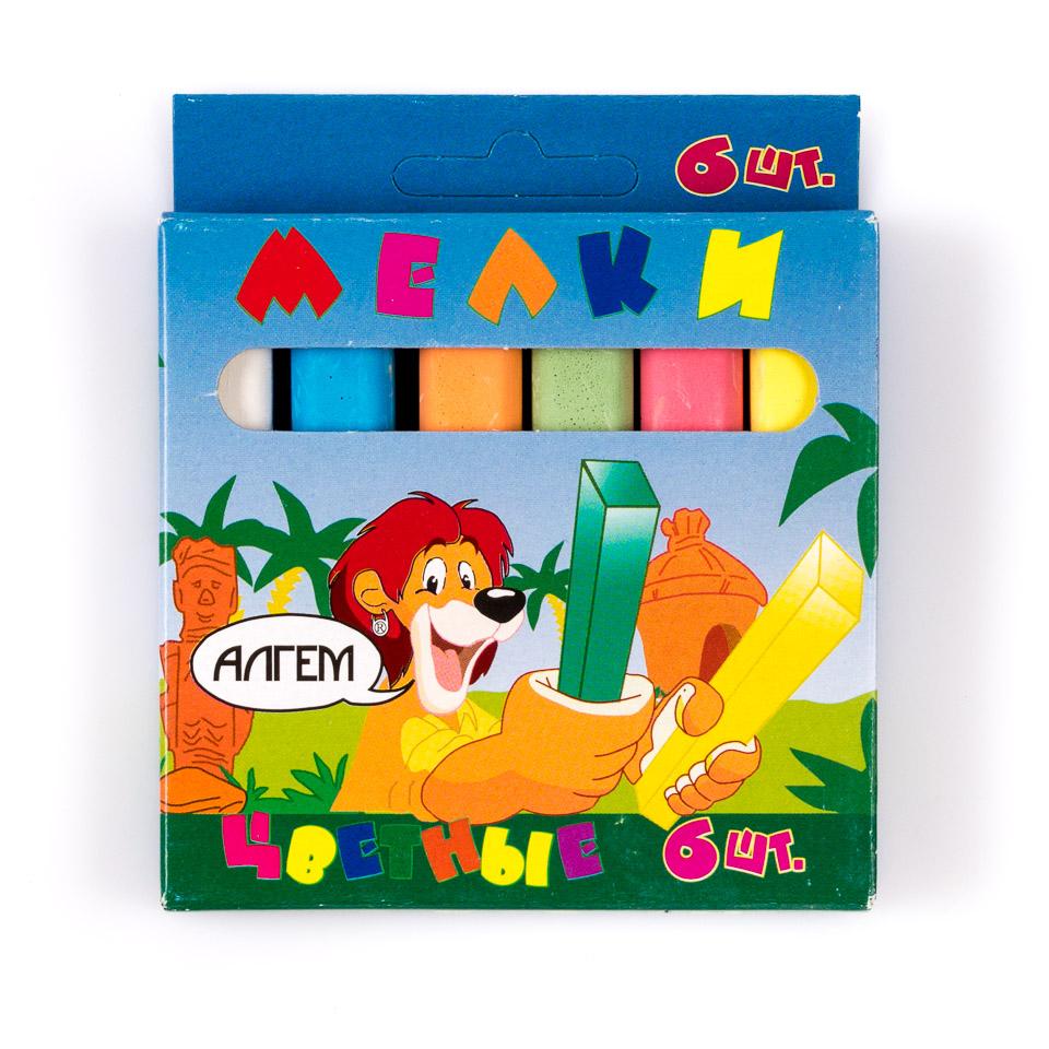 Мелки цветные 'Алгем' 6шт, для рисования на доске и асфальте