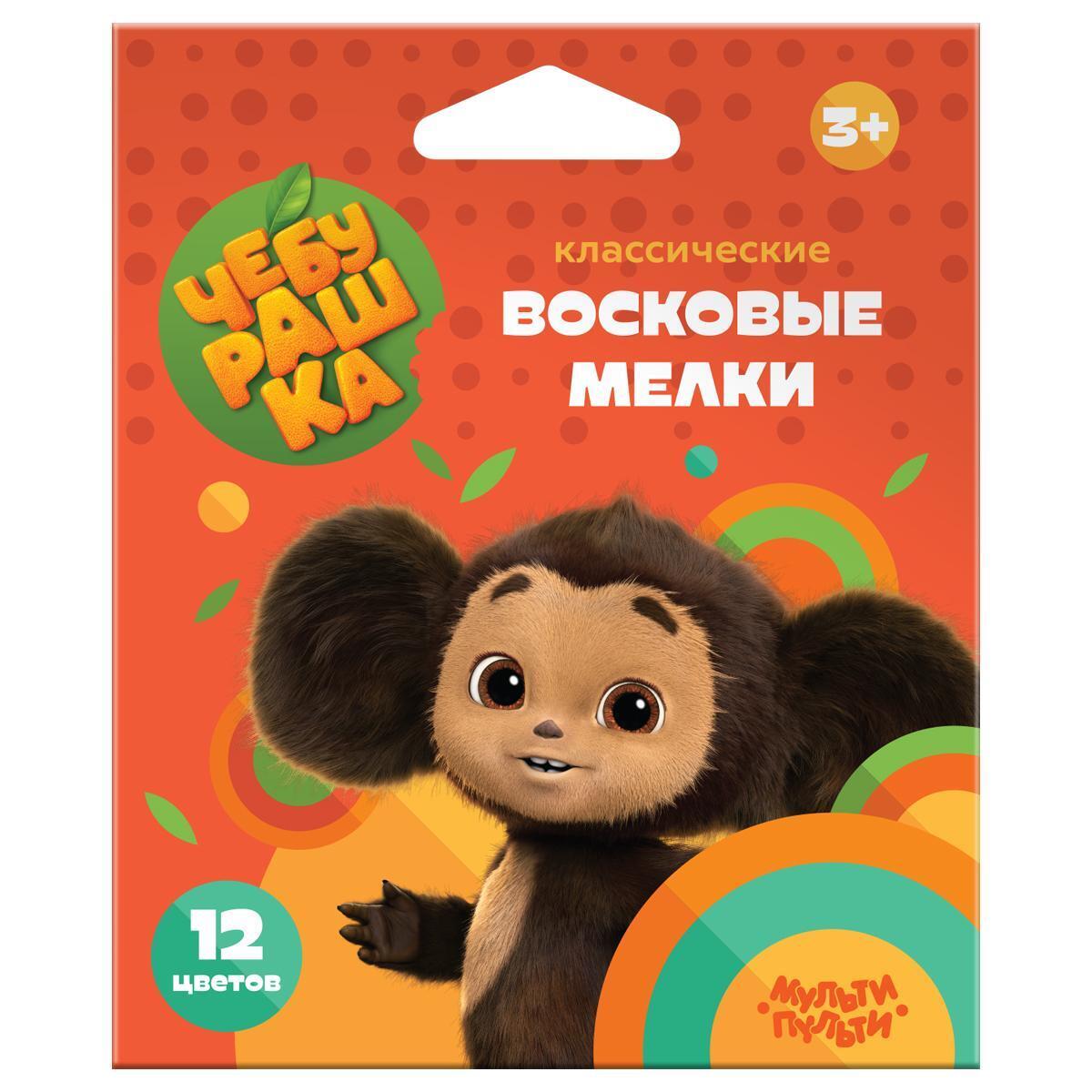 Восковые мелки "Чебурашка" 12 цветов, круглые, 90 мм, безопасные для детей