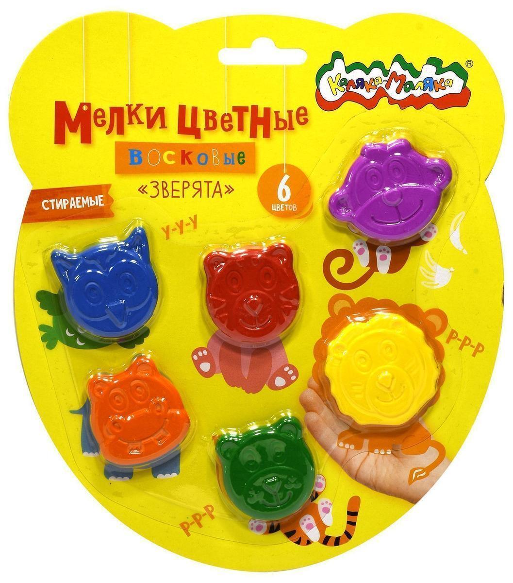 Мелки восковые стираемые 'Зверята', 6 цветов, фигурные, длина 40 мм