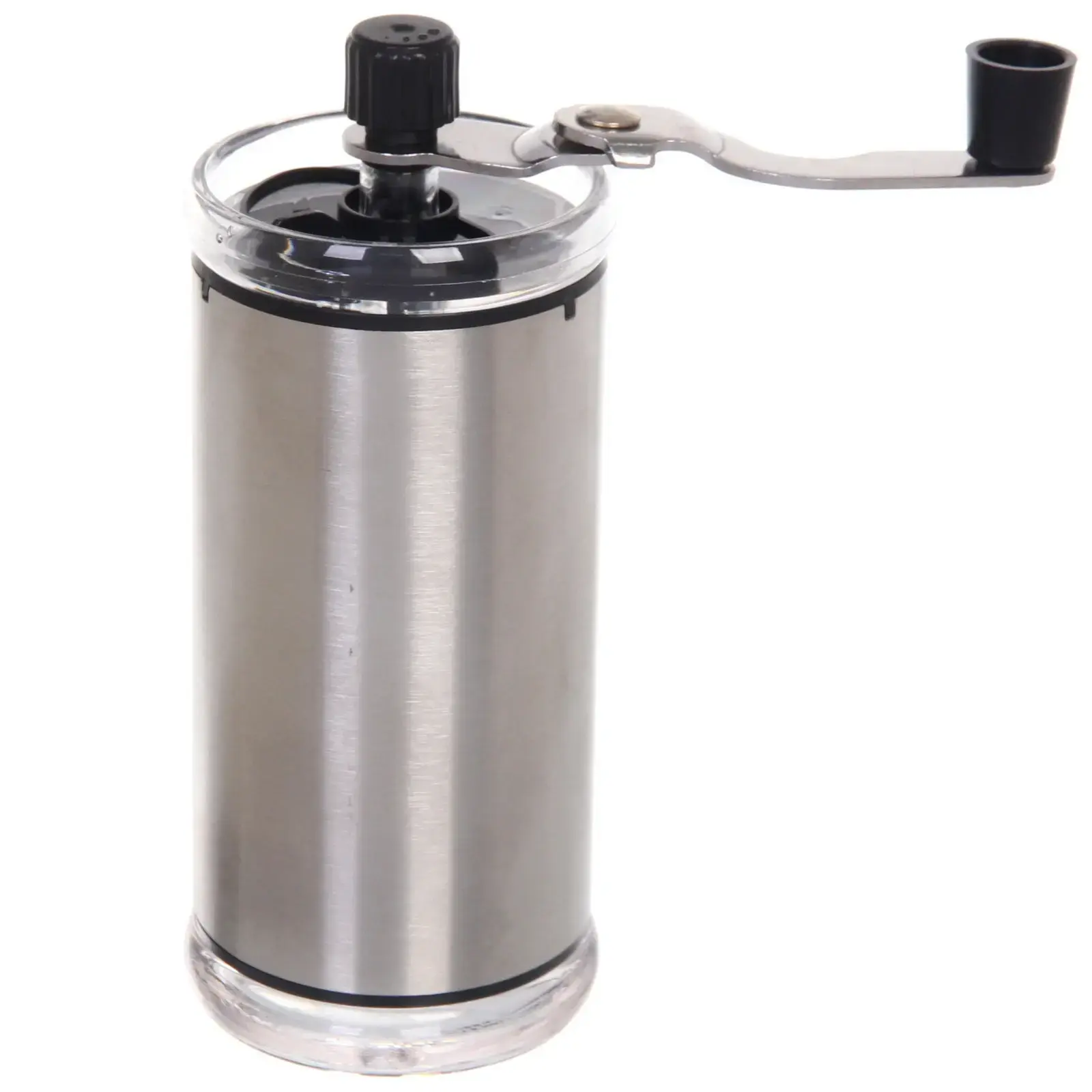 Мельница имеет цилиндрическую форму и выполнена из высококачественных материалов: металлический корпус и пластиковые элементы. Прозрачная крышка позволяет видеть содержимое, а ручка для измельчения обеспечивает комфортное использование. Эта мельница станет отличным выбором для тех, кто ценит качество и удобство в приготовлении кофе.