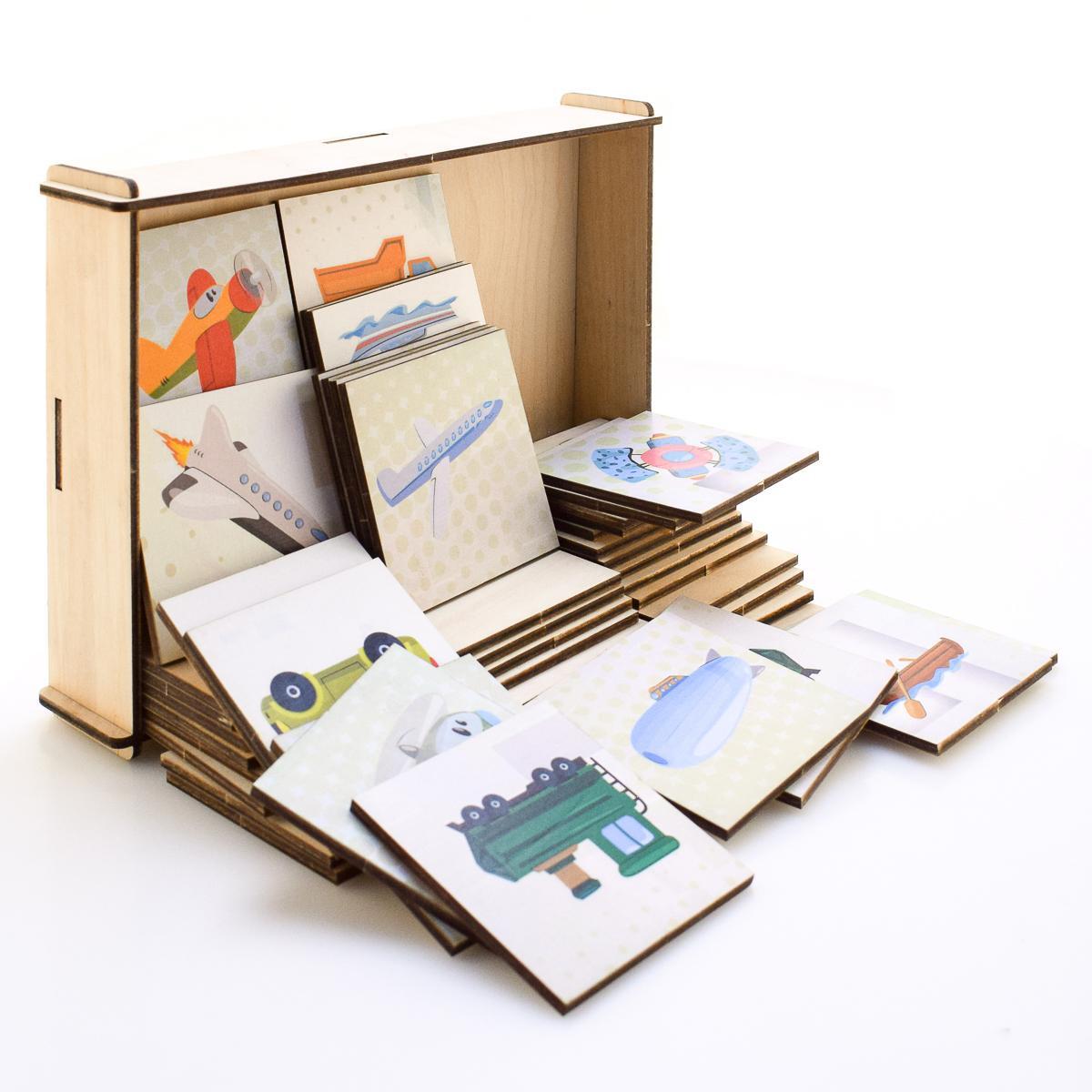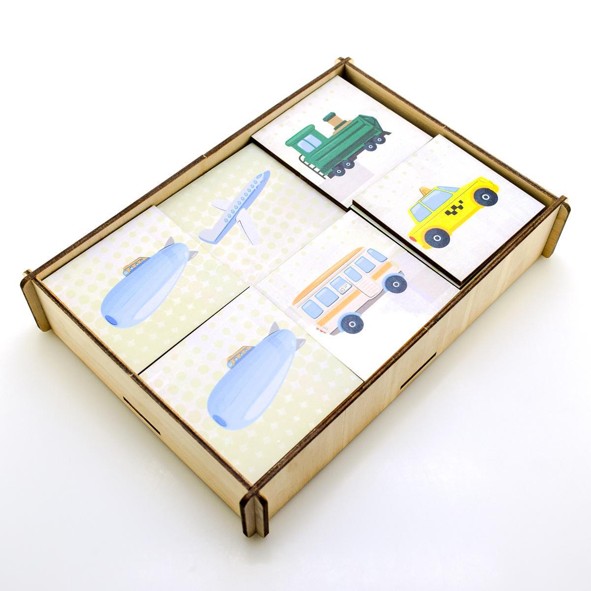 Развивающая игра «Мемори. Транспорт» для детей, 48 карточек, 4 тематики, деревянный ящик