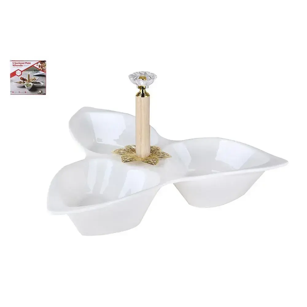 Пластиковая менажница с тремя секциями — идеальное решение для праздничного стола и повседневного использования. Её лаконичный дизайн с декоративным элементом в виде кристалла добавит изысканности любой подаче блюд.