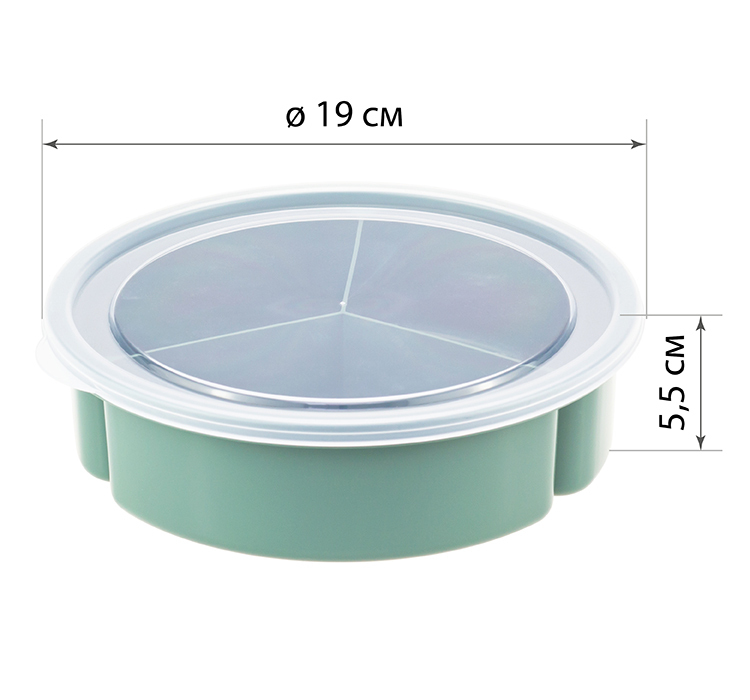 Размеры менажницы составляют 19 см в диаметре и 5,5 см в высоту, что делает её компактной и удобной для хранения. Фисташковый цвет добавляет яркости и свежести вашему столу, а стильный дизайн станет украшением любой сервировки. Эта менажница — отличный подарок для друзей и родных, который будет полезен в любом доме.