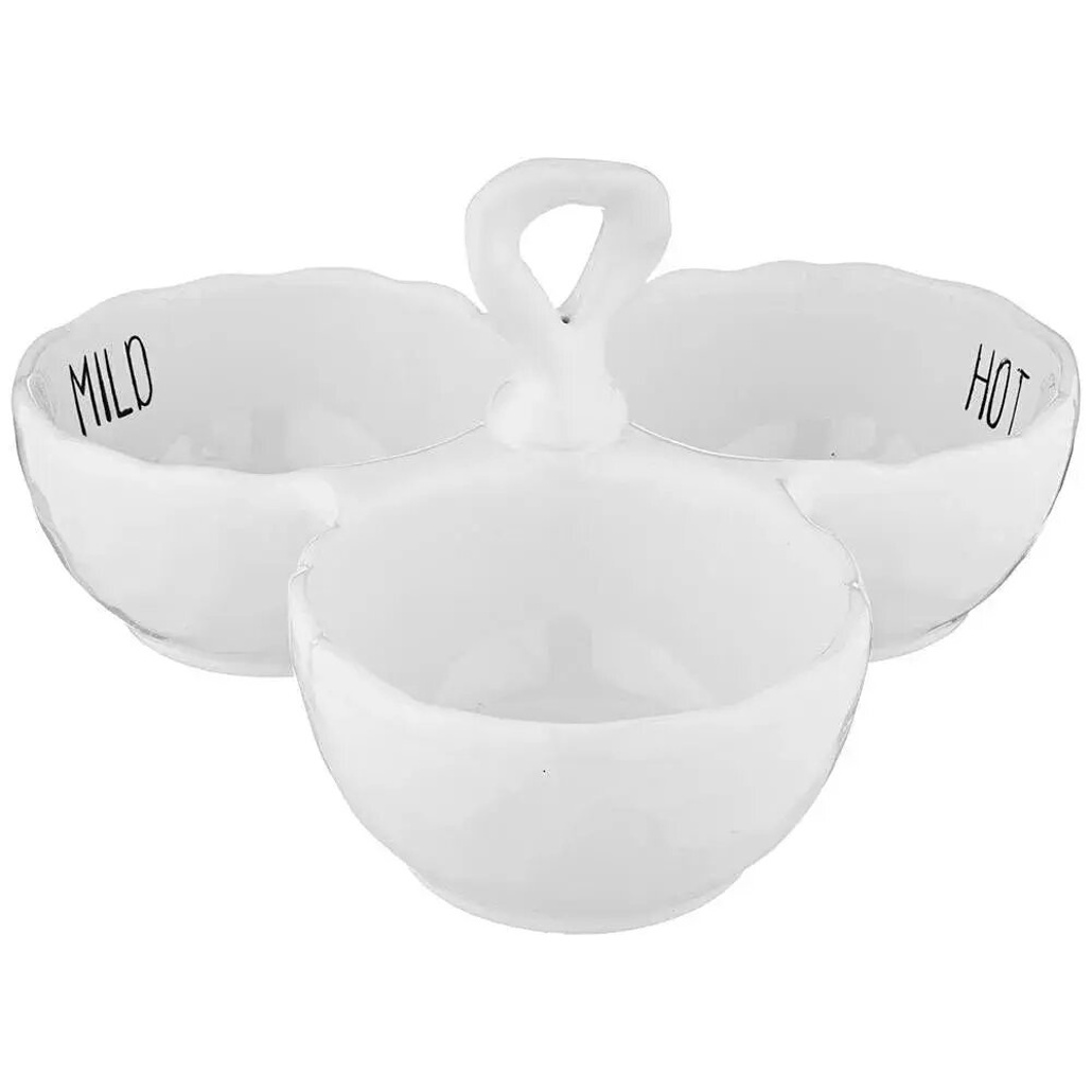 Практичная трехсекционная менажница с эргономичной ручкой позволяет удобно разделять и подавать различные блюда, соусы или закуски. Идеально подходит для домашнего использования, пикников или фуршетов.