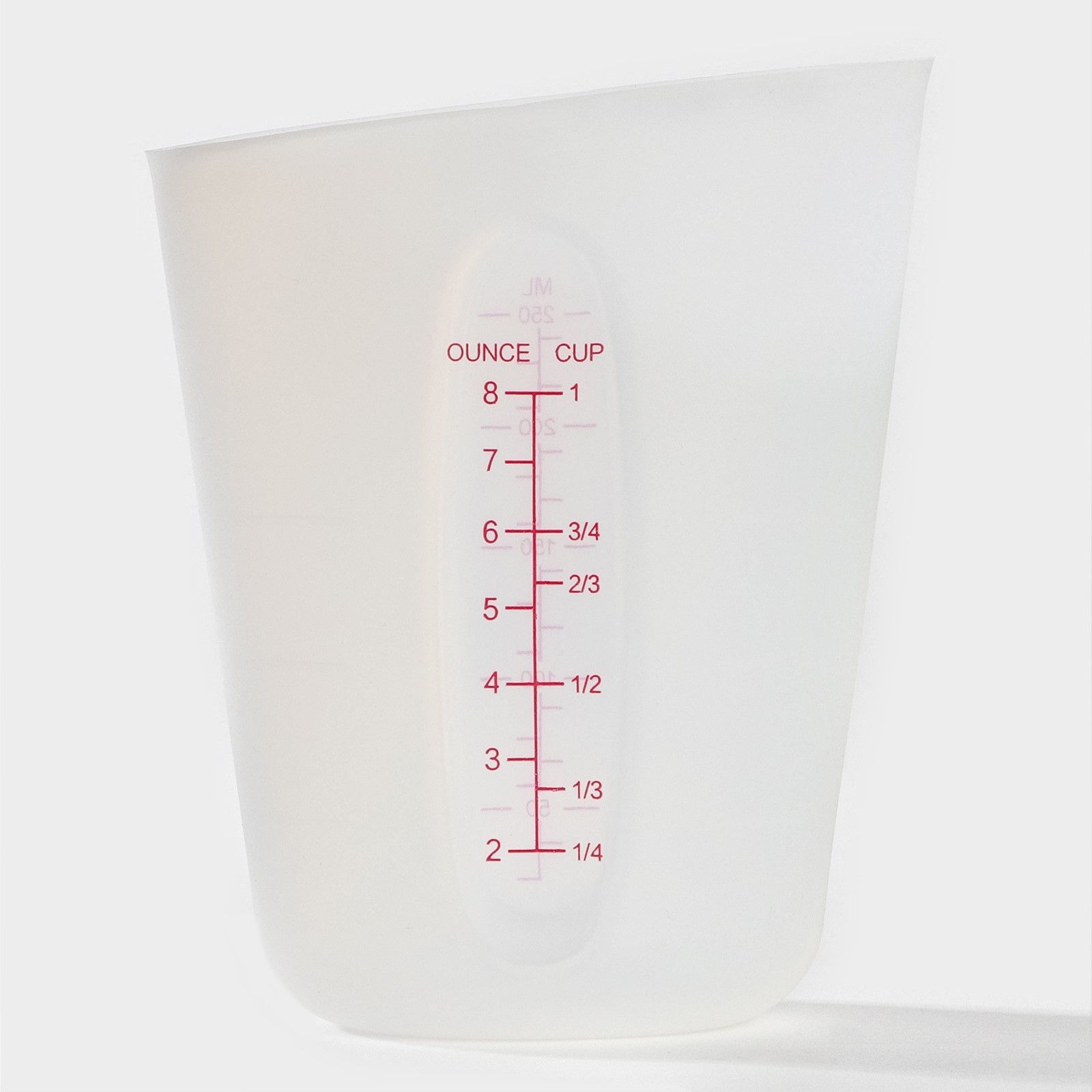 Гипоаллергенный силикон устойчив к температуре до +200°C и не впитывает запахи. Широкая горловина позволяет легко наполнять стакан, а сужающееся дно обеспечивает устойчивость на любой поверхности. Благодаря прозрачным стенкам вы контролируете уровень содержимого без необходимости поднимать стакан.