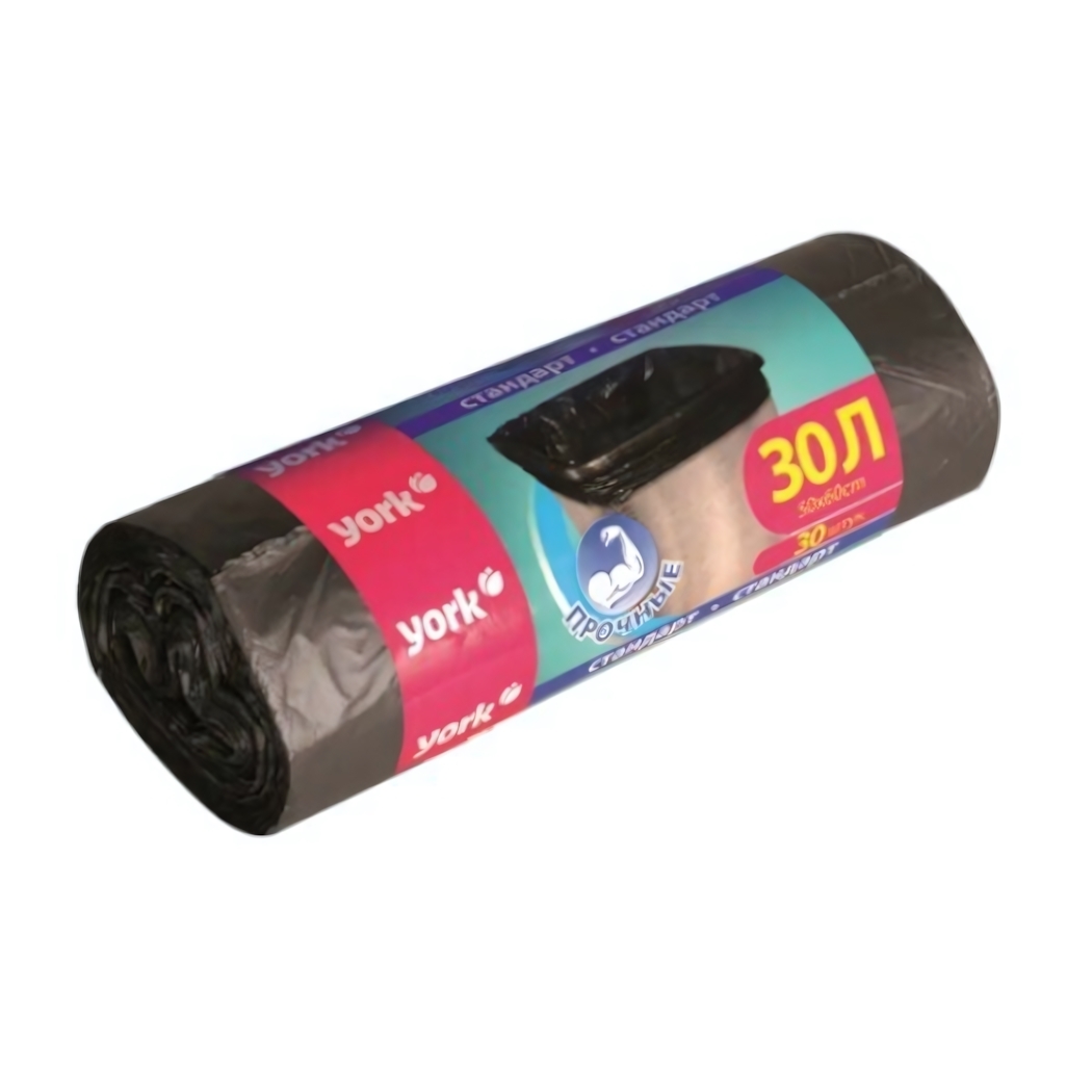 Мешки для мусора 'YORK' 30л, черные, толщина 6мкм, 30шт в упаковке