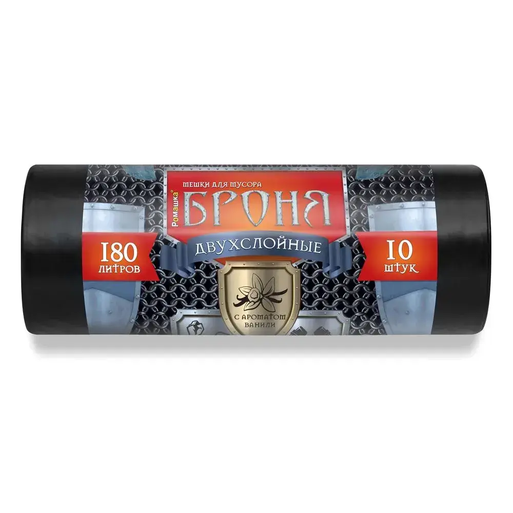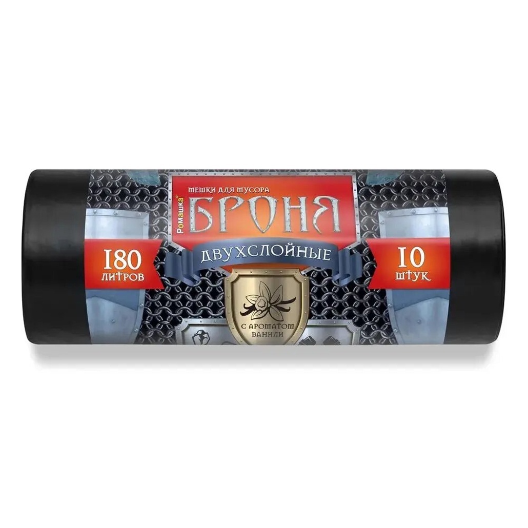 Мешки для мусора ПВД «БРОНЯ» 180л, двухслойные, 90*110см, 60мкм, 10шт/рулон, черный