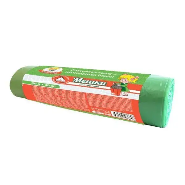 Мешки для мусора прочные 30л, 30 штук в рулоне, толщина 5мкм, ПНД, Умничка