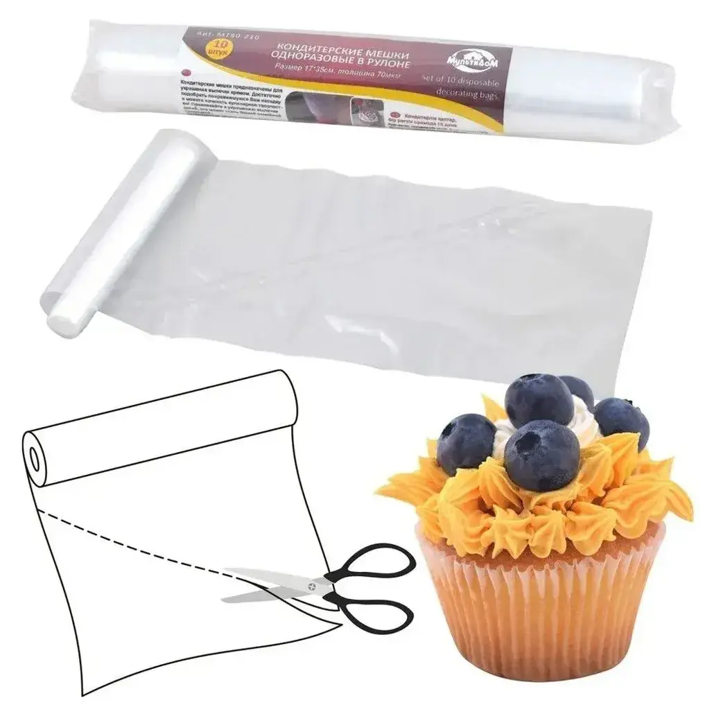 Мешки кондитерские одноразовые, комплект из 10 штук в рулоне, 35х17см, 70мкм, пищевой пластик
