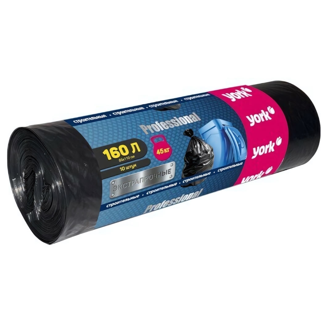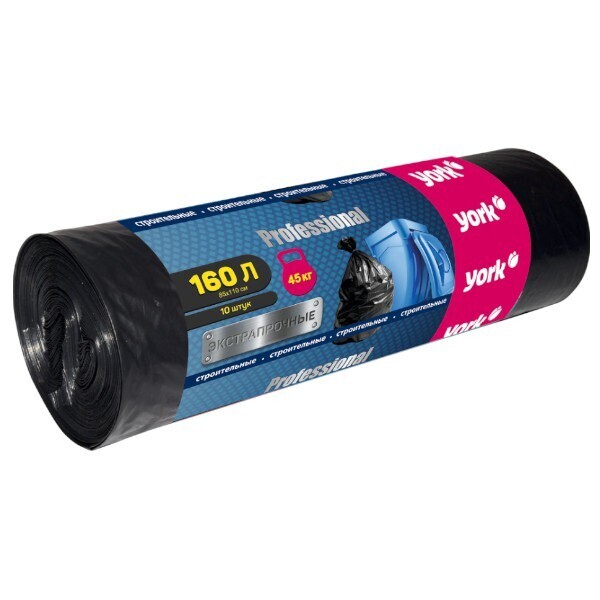 Мешки строительные экстрапрочные ПВД 160л, 60 мкм, комплект 10 шт, черный