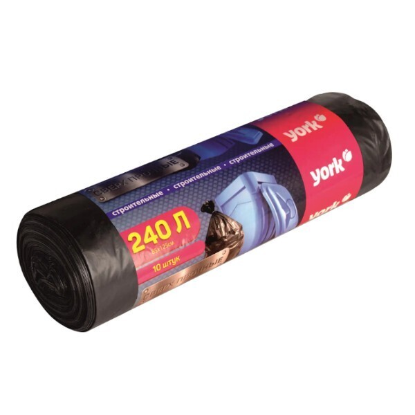 Мешки строительные ПВД 240л, 28 мкм, комплект 10шт, прочные для тяжелого мусора, черные