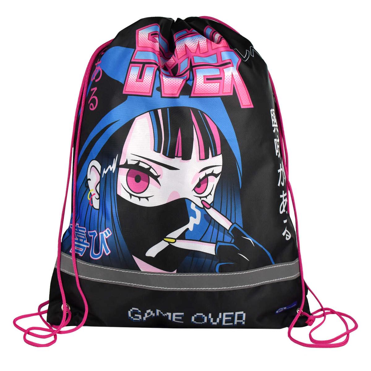 Хотите выделиться среди других? Мешок для обуви "Кибераниме" станет вашим идеальным выбором. Яркий аниме-принт и надпись "GAME OVER" создают неповторимый стиль.