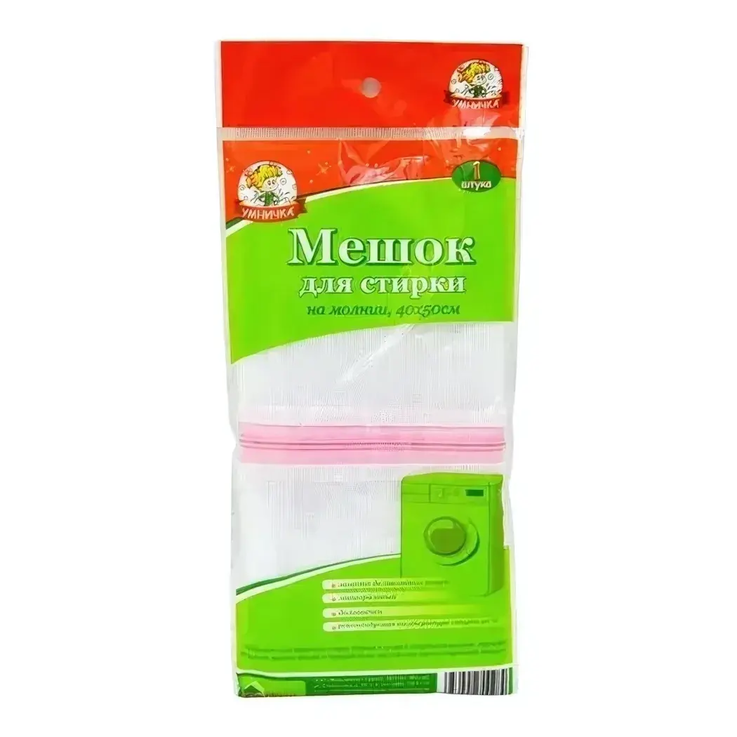 Мешок для стирки 'Умничка' сохранит ваши вещи в идеальном состоянии. Прочный сетчатый материал и удобная молния обеспечивают безопасную стирку даже самых деликатных тканей.