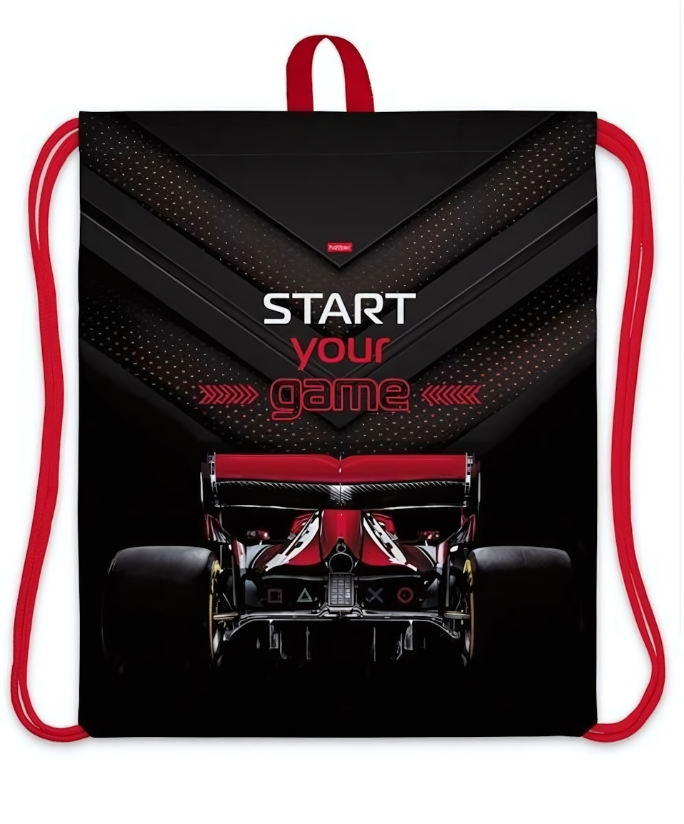 Стильная надпись 'START your game' и изображение гоночного автомобиля делают этот мешок отличным выбором для молодежи и спортсменов.