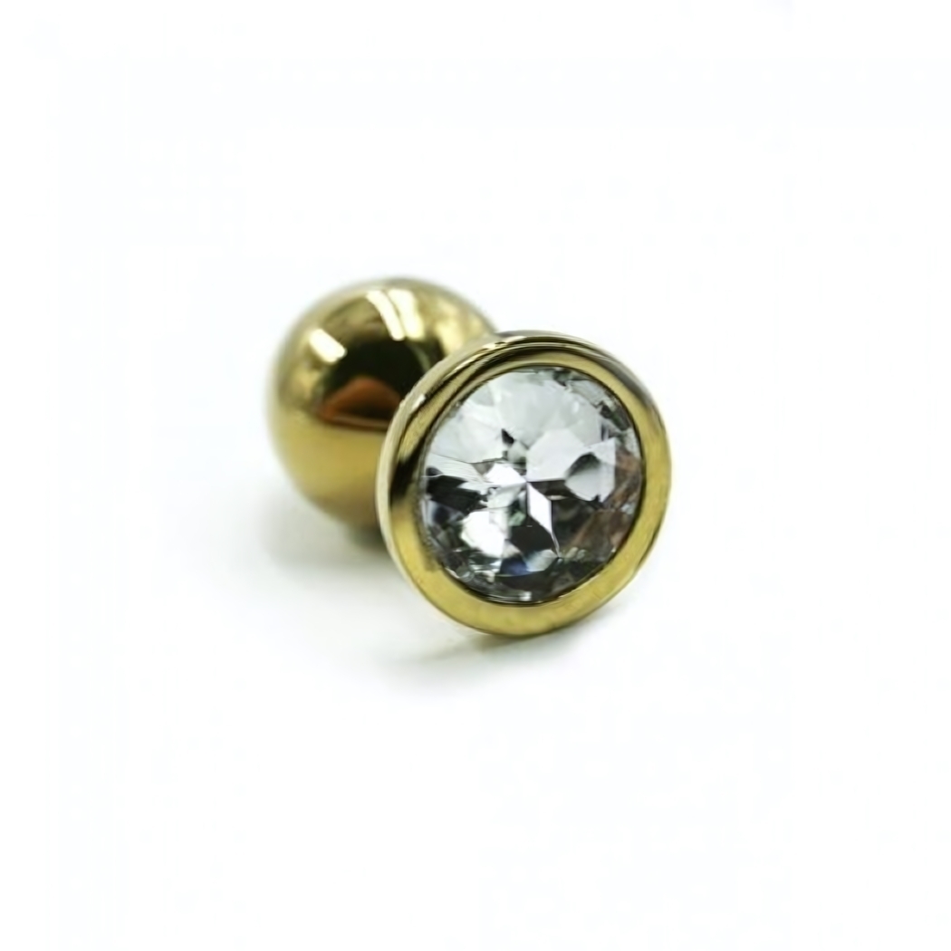 Анальная пробка металлическая Medium, золотой цвет/прозрачный камень, длина 7см, диаметр 3.4см