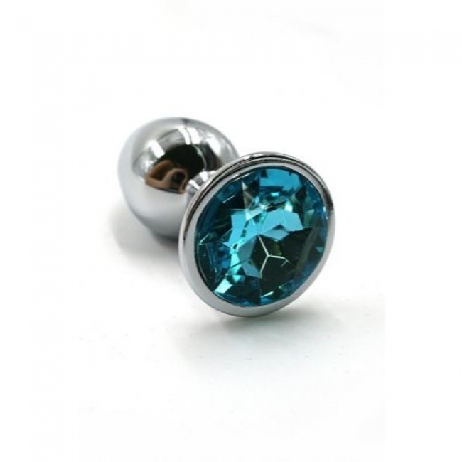 Анальная пробка металлическая 'Medium Light Blue', серебристая, голубой камень, 7х3.4 см