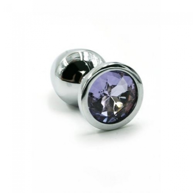 Анальная пробка металлическая KANIKULE, эргономичный дизайн, 7х3,4 см, серебристый, светло-фиолетовый камень, Англия