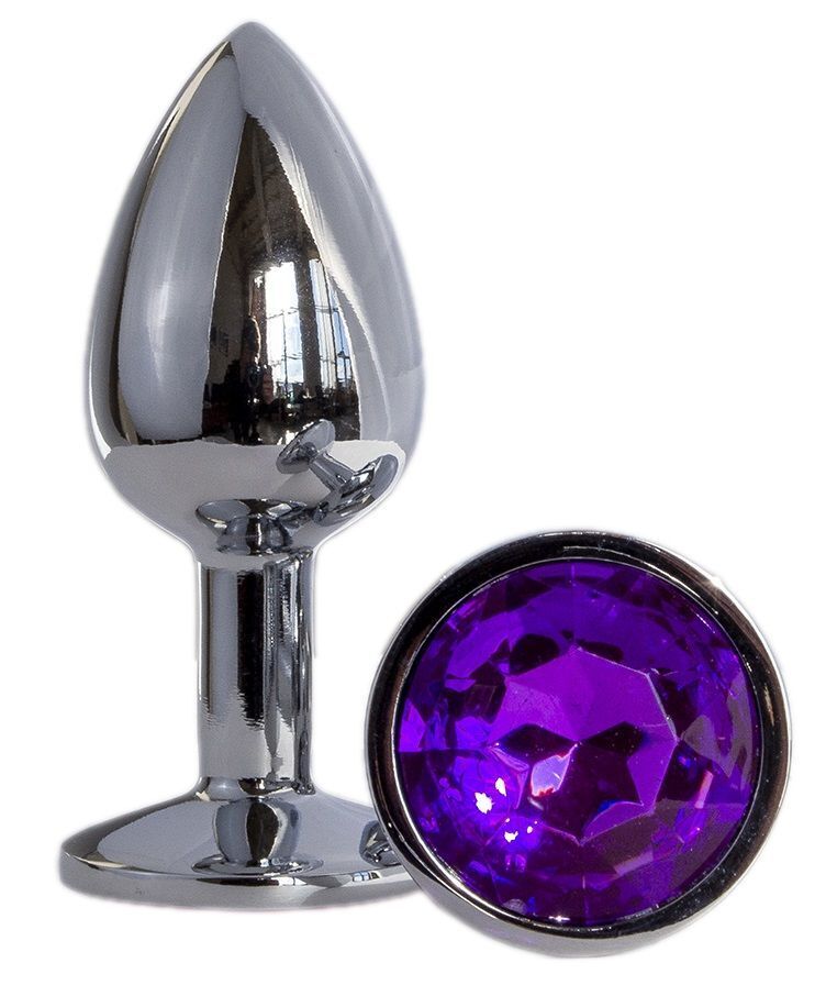 Металлическая анальная втулка с фиолетовым кристаллом