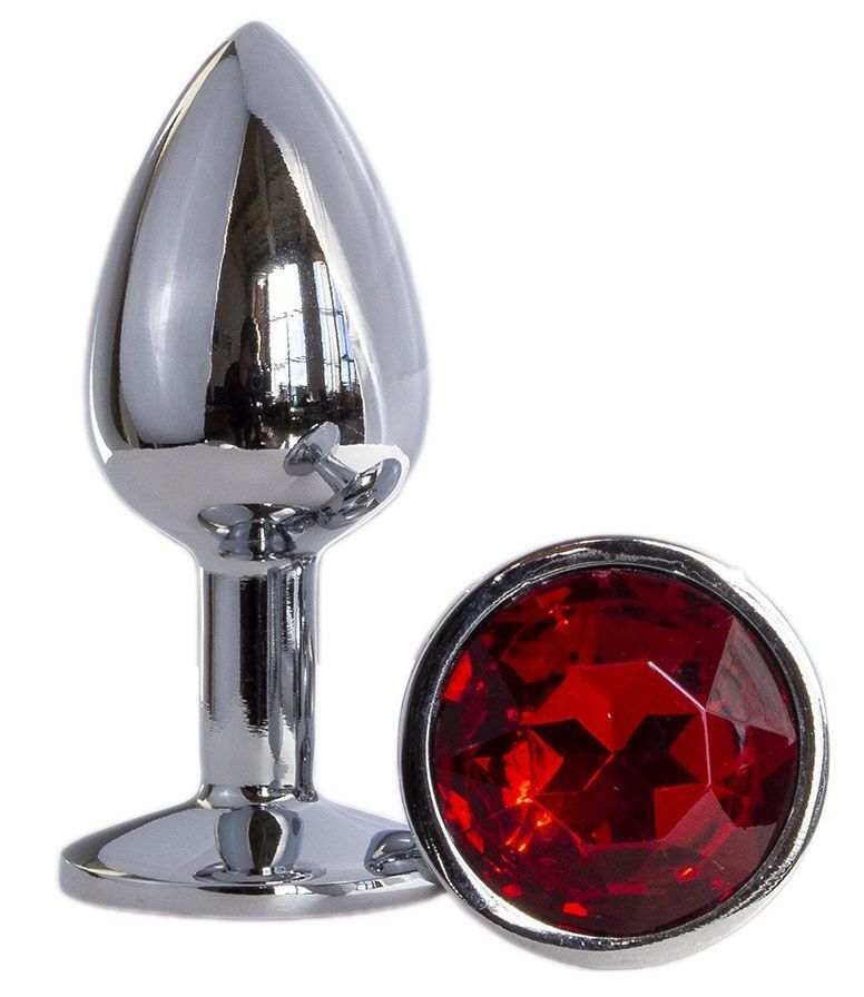 Металлическая анальная втулка с красным кристаллом