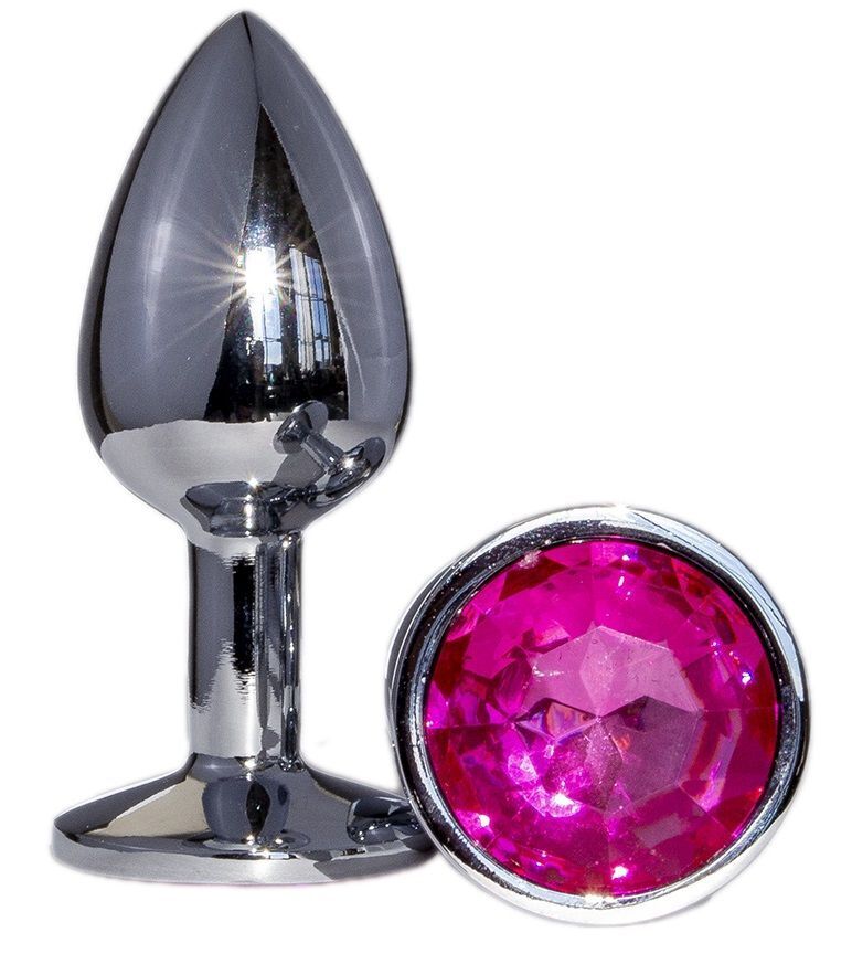 Металлическая анальная втулка с ярко-розовым кристаллом